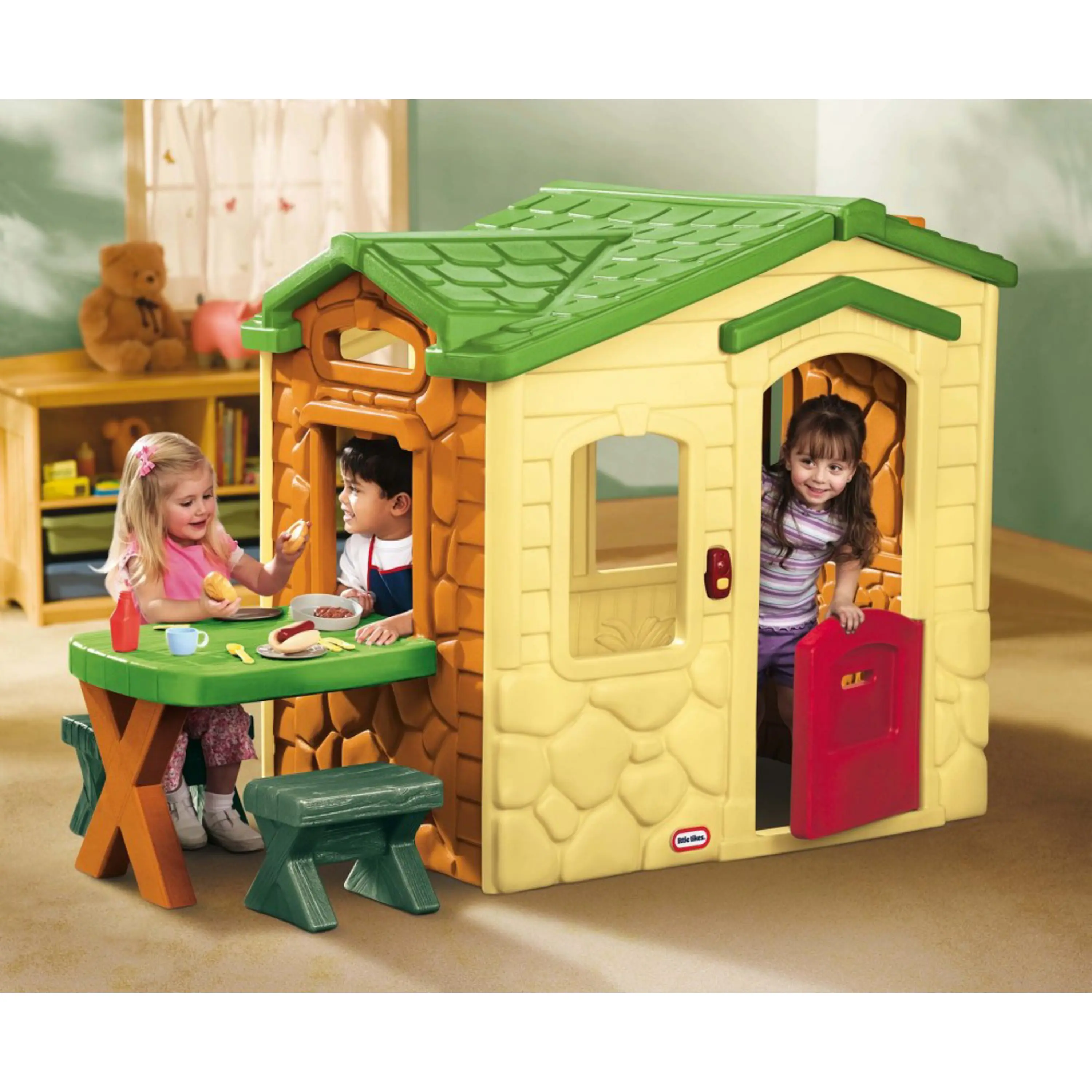 Tento nádherný domeček od firmy Little Tikes nabízí nejen mnoho podnětů ke hře uvnitř domečku (sporák, krb...) ale i rozšířenou plochu na hraní – venkovní piknikový stoleček se stoličkami. Domeček povzbuzuje děti, aby si rády šly hrát ven na čerstvý vzduch, při hraní plně využily svou nekonečnou představivost a strávily tak hodiny a hodiny zábavnou hrou.