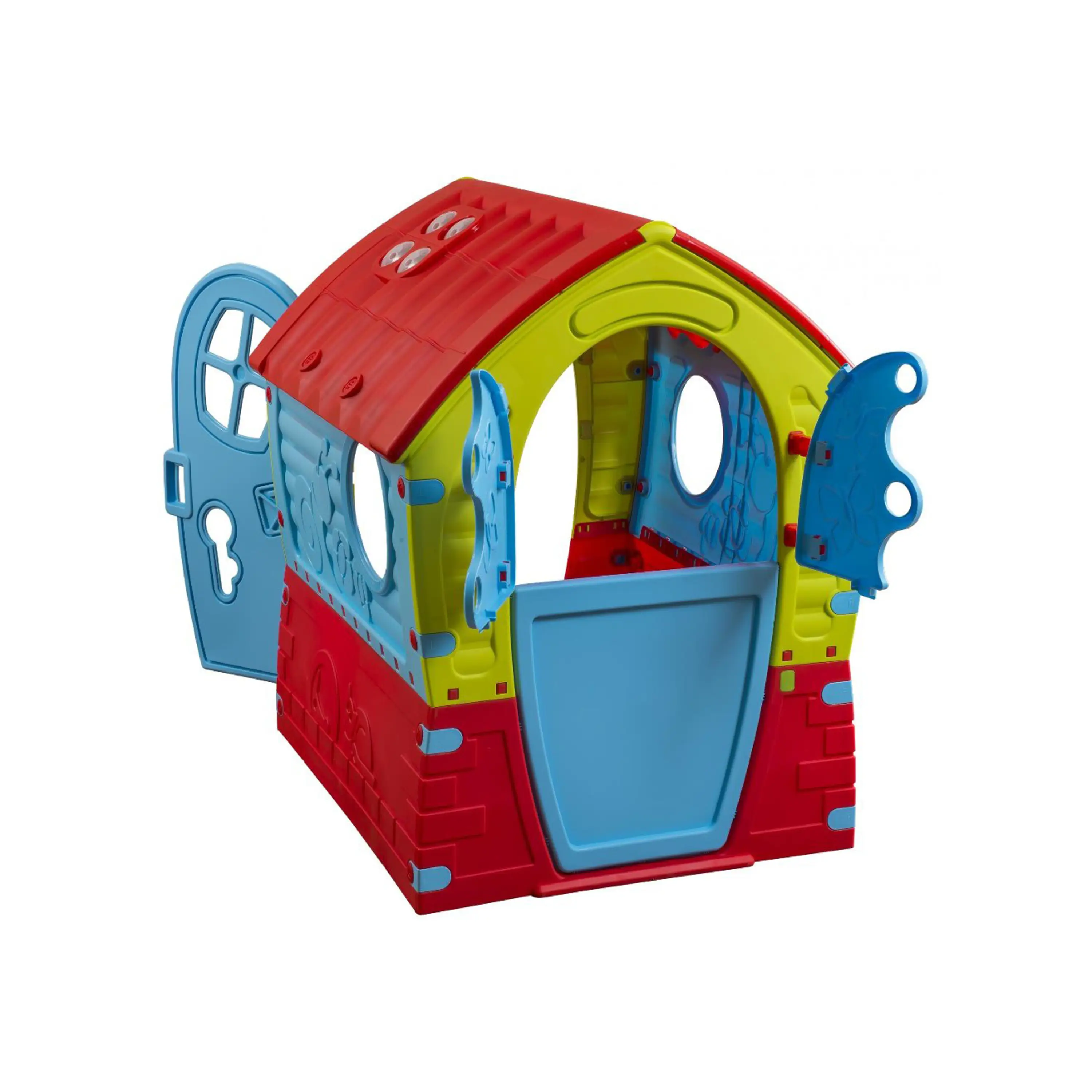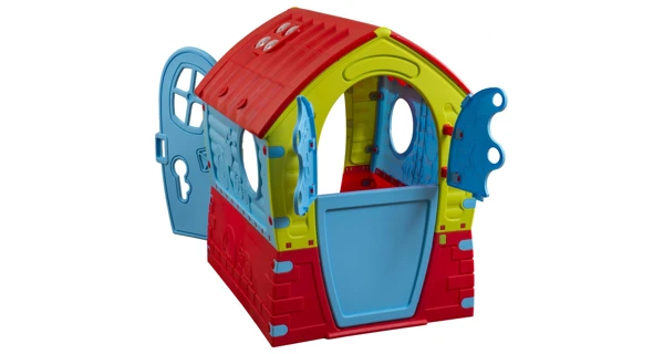 Dětský domeček Fairy House má nádherné svěží červeno-modro-žluté barevné provedení. Domeček pro děti je vyroben z kvalitního a pevného plastu, který vydrží dlouhá léta v původním stavu. Po bocích zdobený obrázky z pohádky šneka a květinek. Šikmá střecha má střešní okno s větráky a průsvitným oknem, který propouští do domečku pro děti sluneční paprsky a světlo. Průčelí dětského domku je zdobené cihlovým vzorem. Ve středu jsou velké oblé dveře s oknem, otvorem na klíč a poštovní schránkou. Domek před děti je pohodlný a prostorný, což zajišťuje dětem komfortní hru. Bezpečnost domku je zaručena díky odolným a pevným stěnám.