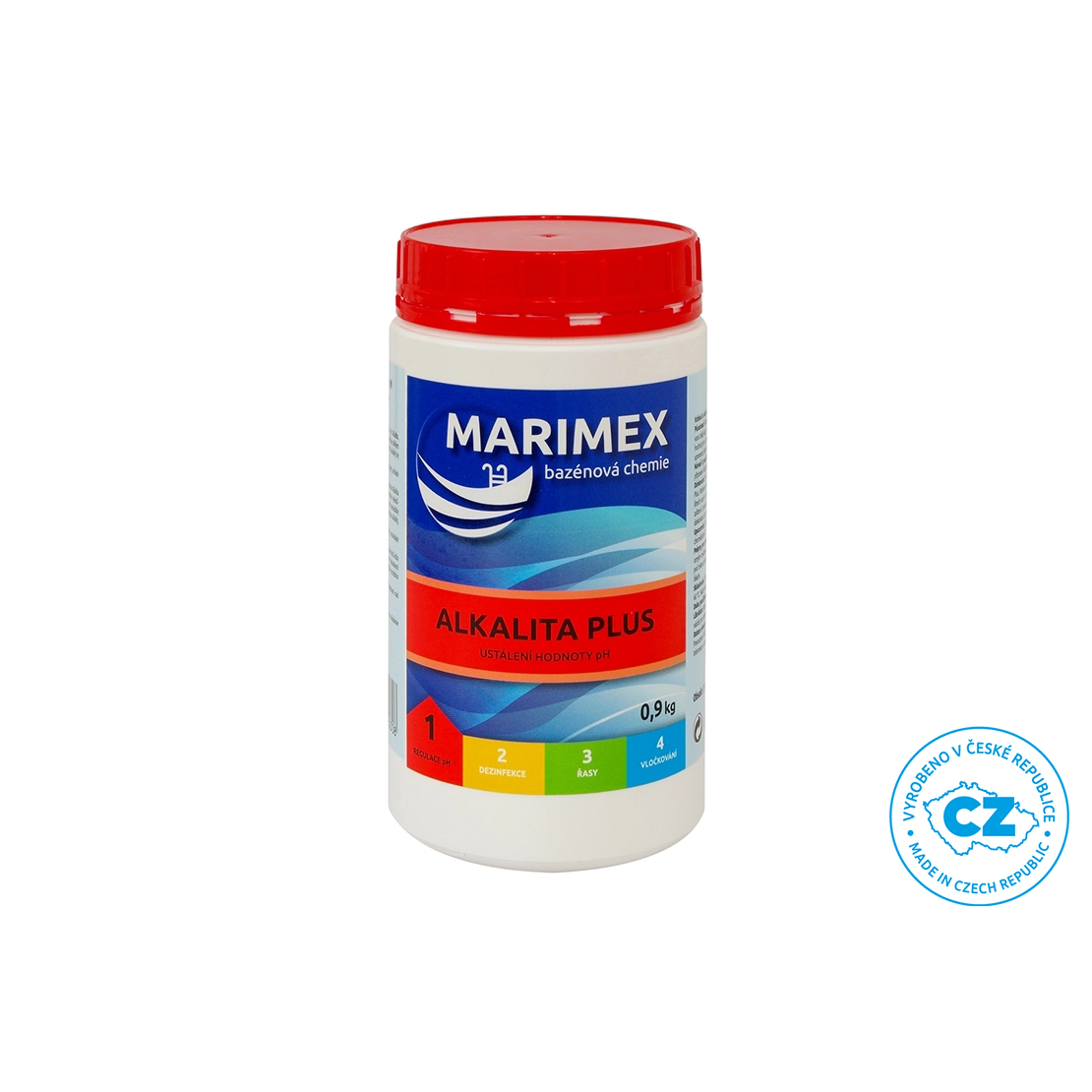 Marimex plus je práškový přípravek na zvýšení alkality bazénové vody a stabilizaci pH. Pokud je celková alkalita udržována ve správném rozmezí 80 – 120 ppm, brání náhlým změnám hodnot pH a optimalizuje účinek dalších přípravků na ošetřování bazénové vody. Hodnota alkality by měla být vždy upravena ještě před tím, než změříte a upravíte hodnoty pH a volného chloru.