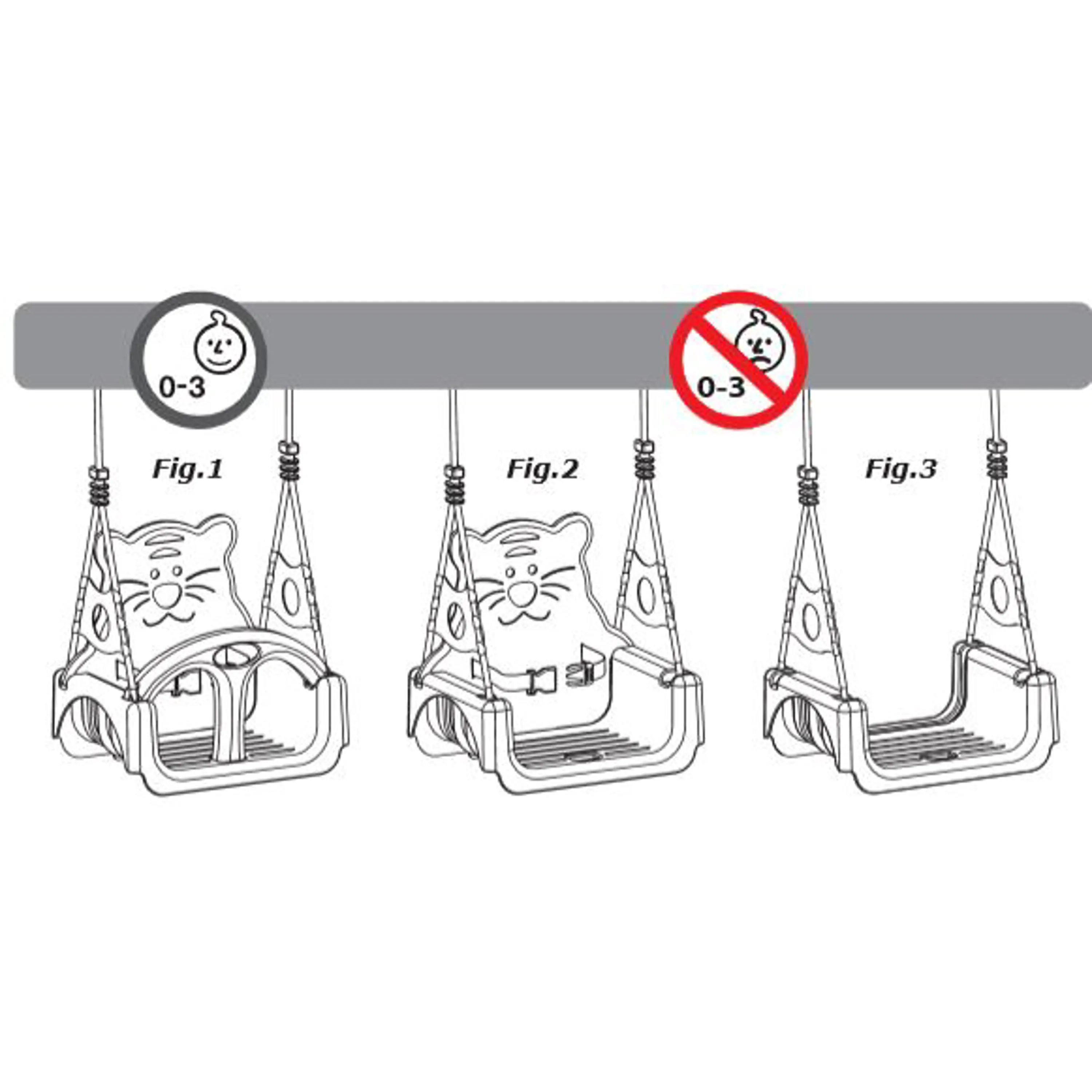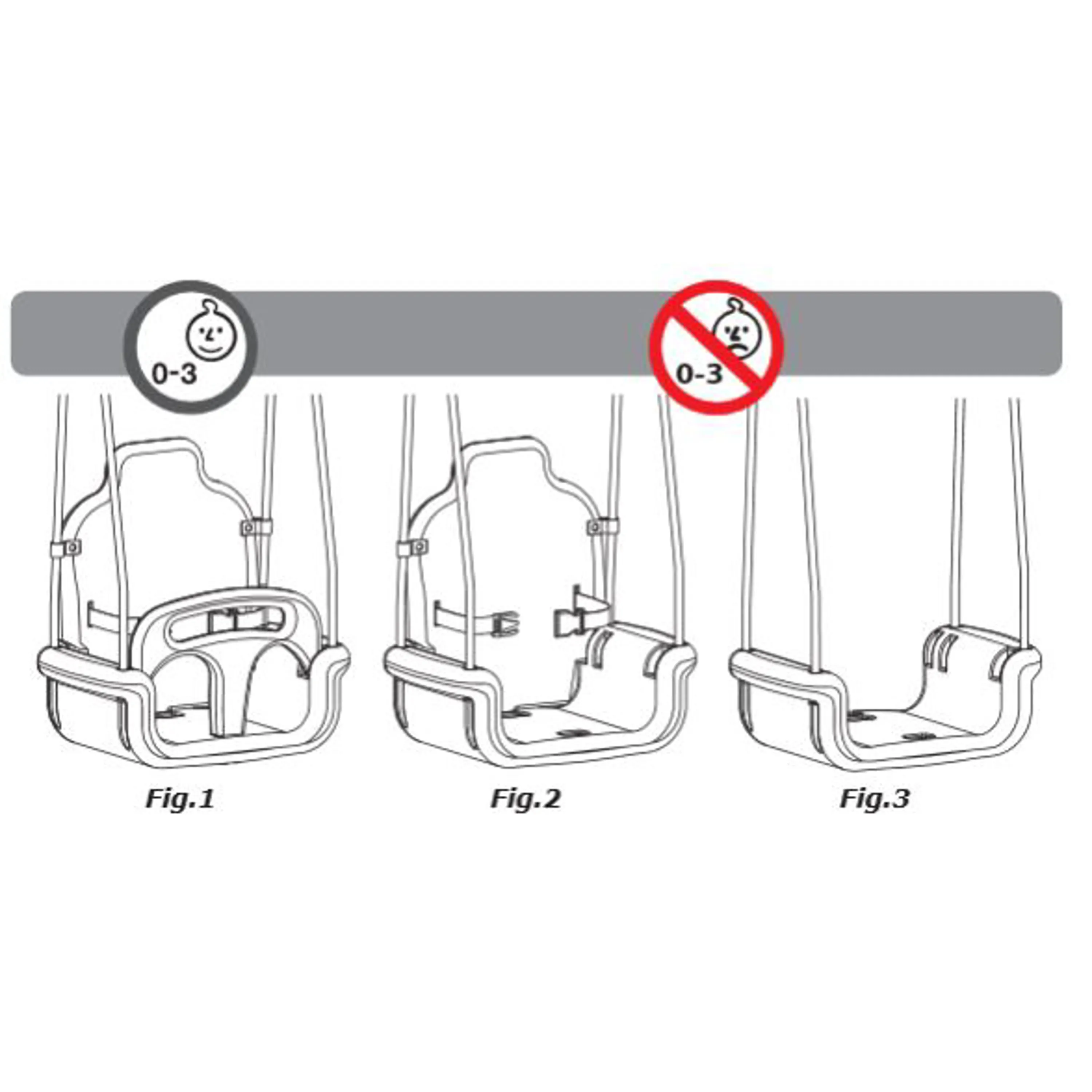 - věk 3+ - z houpačky lze odebrat hrazdičku, ale ponechat opěrku zad s bezpečnostním páskem