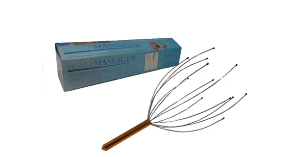 Jednoduchá masážní pomůcka napomáhá celkové relaxaci a stimulaci akupresurních bodů na hlavě.