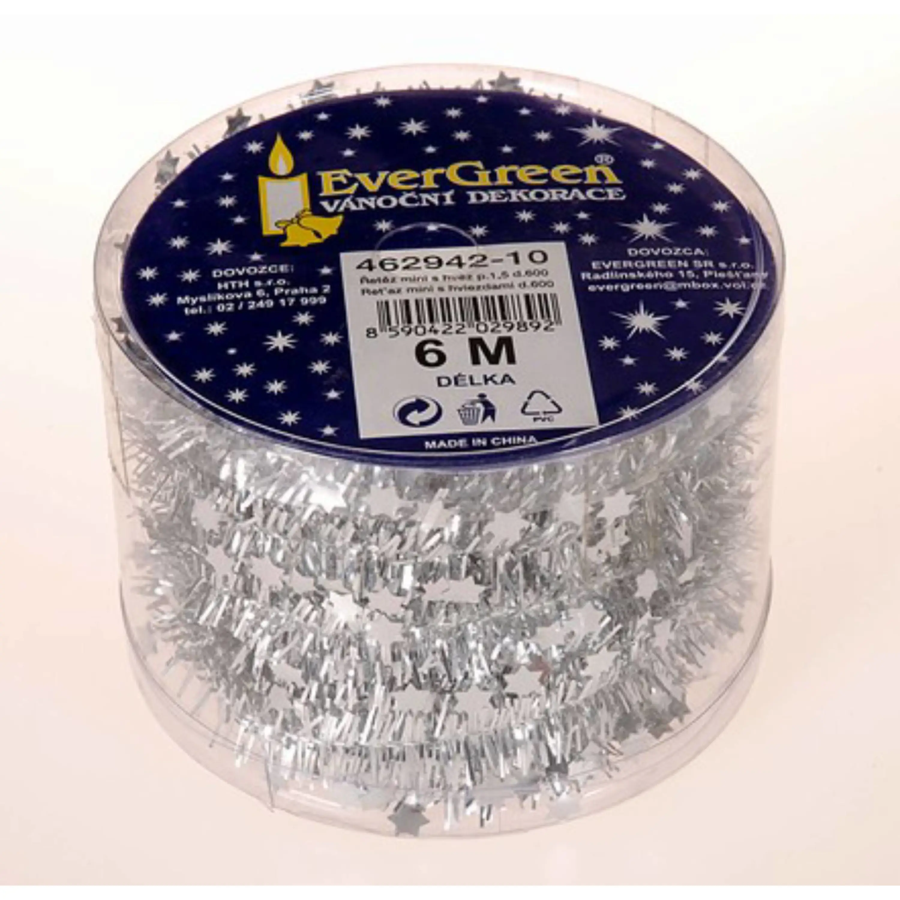 Mini řetěz s hvězdičkami ve stříbrné barvě, který krásně dozdobí váš vánoční stromeček.