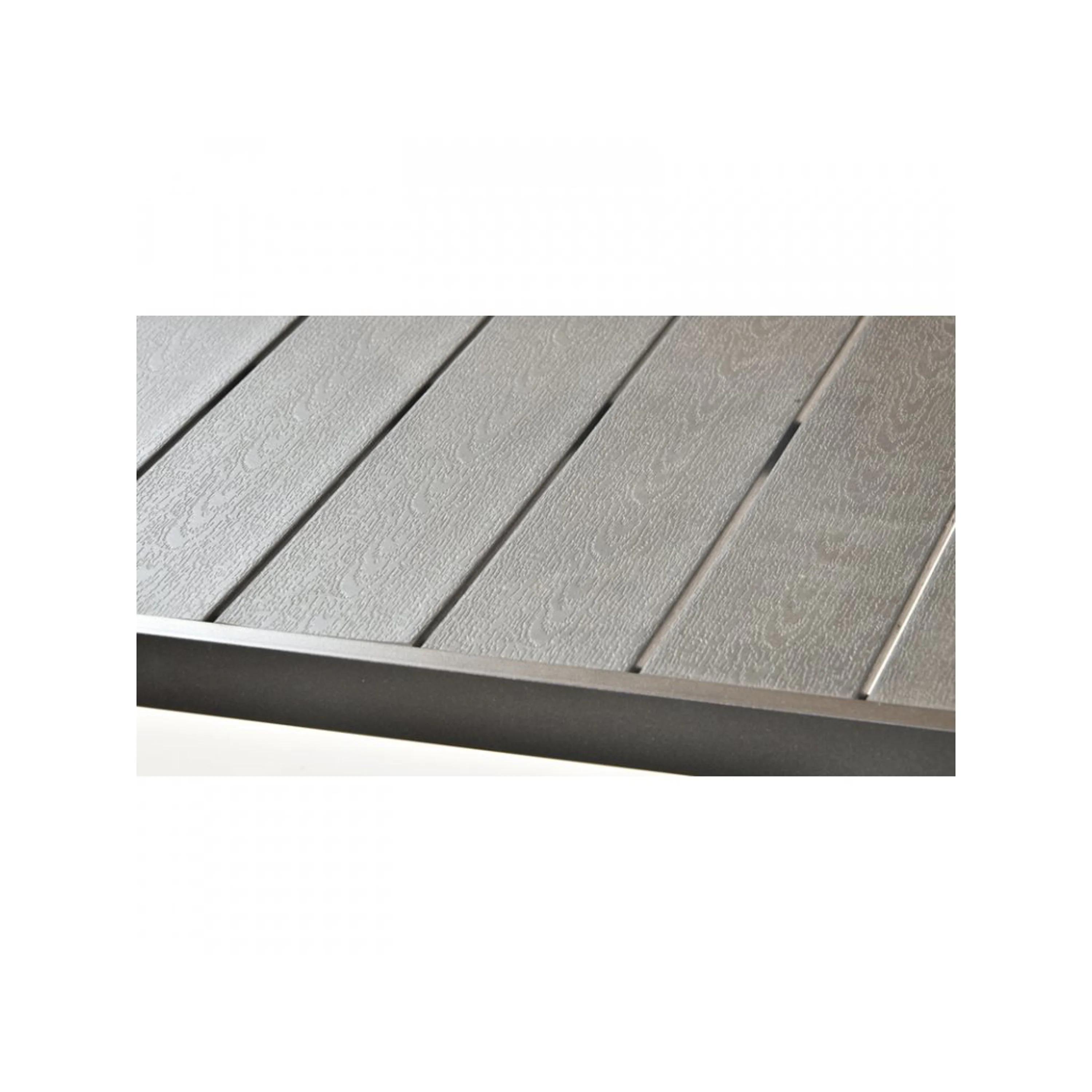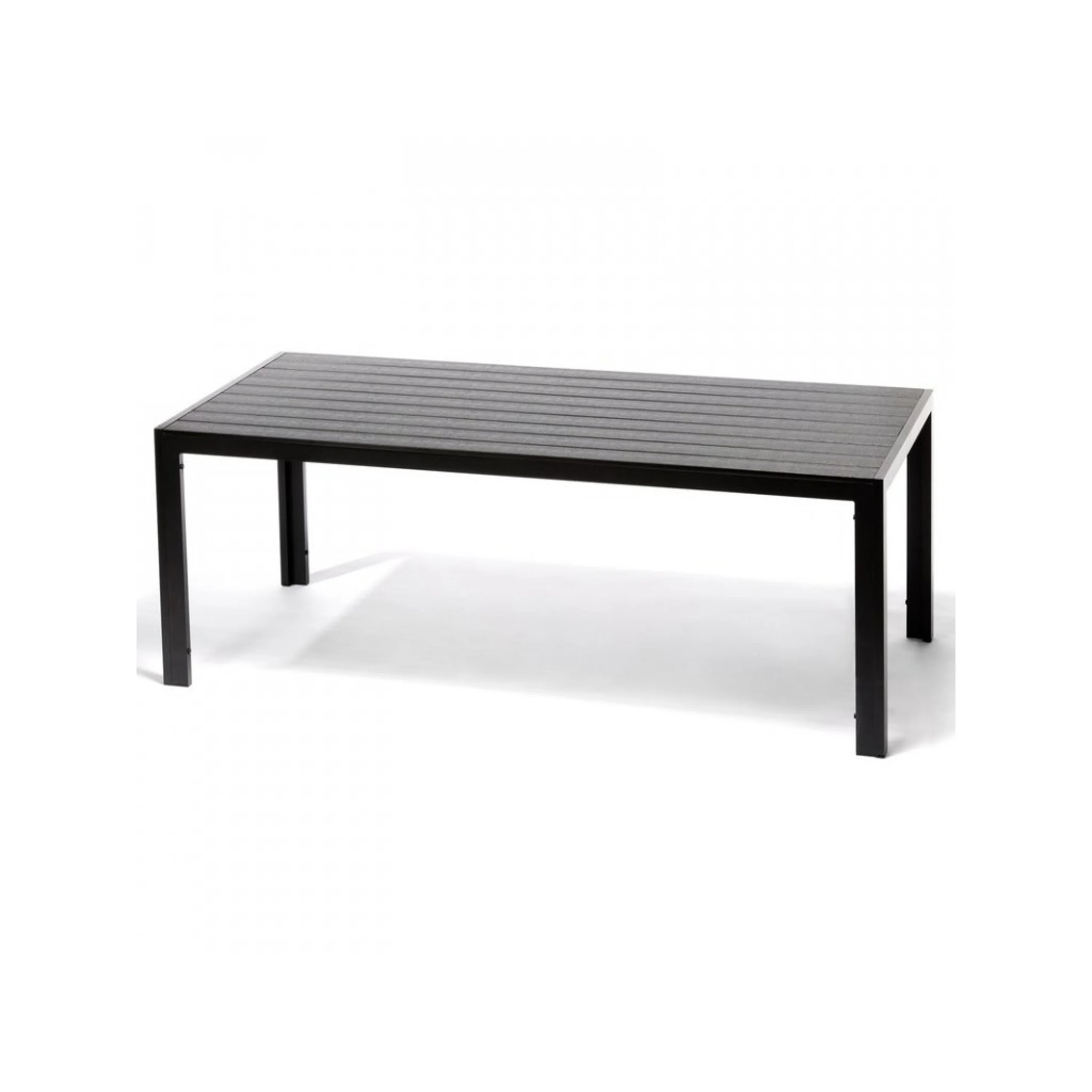 Sestava zahrnuje krásný stůl vyrobený z materiálů, které nevyžadují zvláštní údržbu. Konstrukce z hliníku ošetřeného proti rzi, deska stolu z Artwoodu a adaptéry u nohou pro větší stabilitu. Klasické tvary a černé provedení stolu.