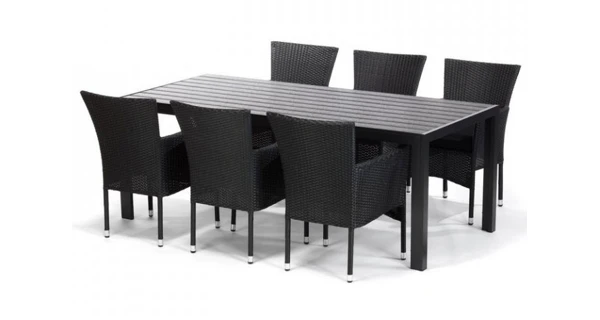 Jídelní stůl doplňují odolná stohovatelná křesla vyrobená z umělého ratanu, dodávána vč. podsedáků. Křeslo má inteligentní tvarování, kvalitní ocelovou konstrukci ošetřenou proti rzi, která vám zaručí provoz po mnoho let a díky umělému ratanu se Vám na slunci nevyšisuje. Sestava se hodí do venkovních i vnitřních prostor.