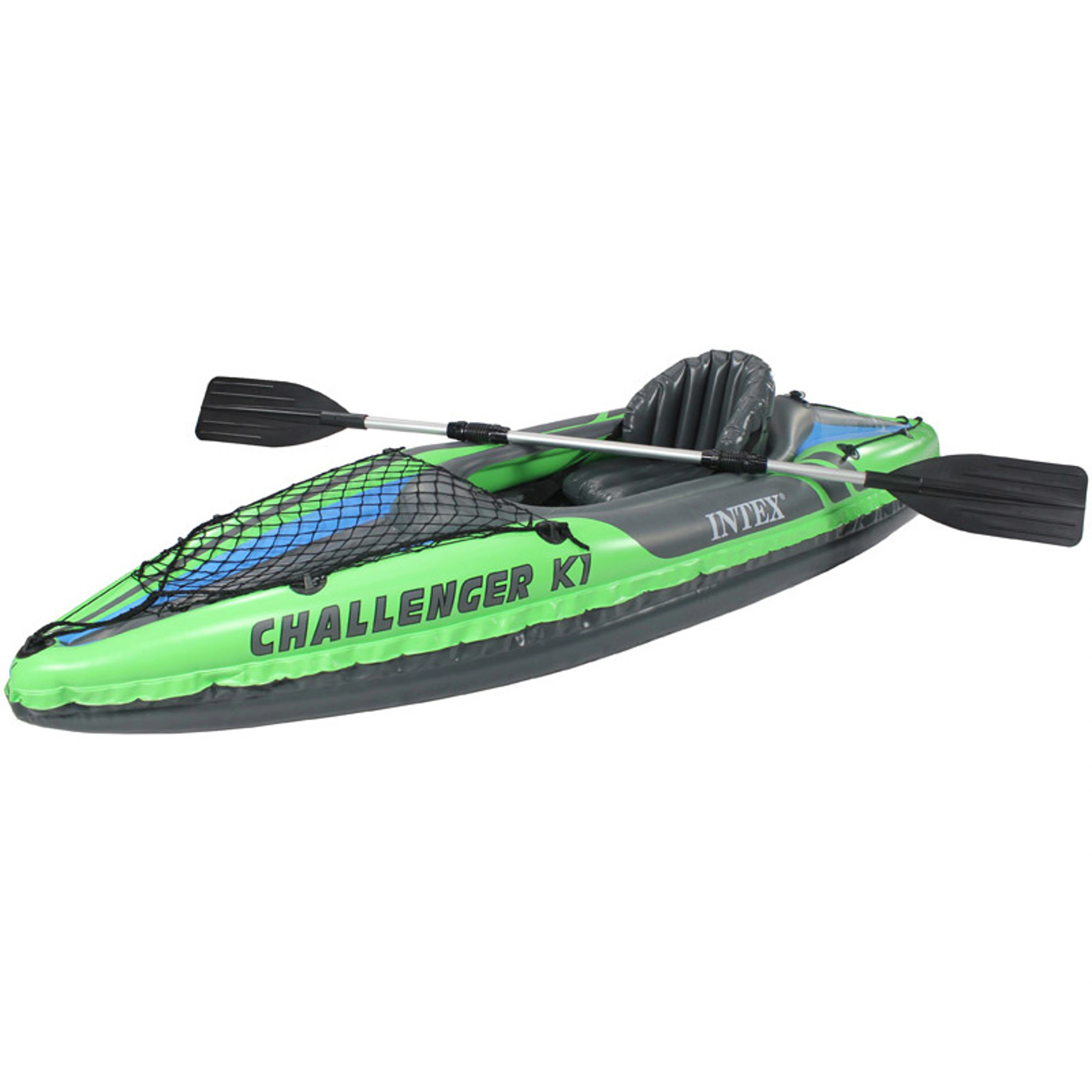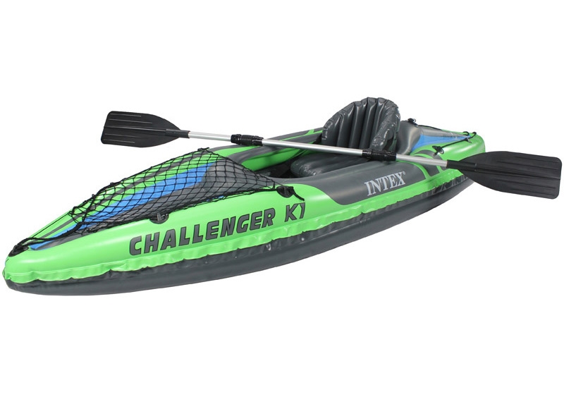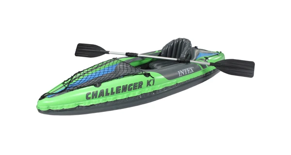 Intex Challenger K1 pro jednu osobu s nízkým profilem je vhodný na jezera, mírné řeky a klidné moře. Dodáván včetně pádel a ruční pumpy. Kajak nabízí dostatek prostoru pro příjemné sezení v kokpitu. Velký a pohodlný kokpit pro snadné vystupování i nastupování. Nastavitelný sedák s opěrkou zad. Nafukovací vyztužené dno pro stabilitu a pevnost. Dvě vzduchové samostatné komory.