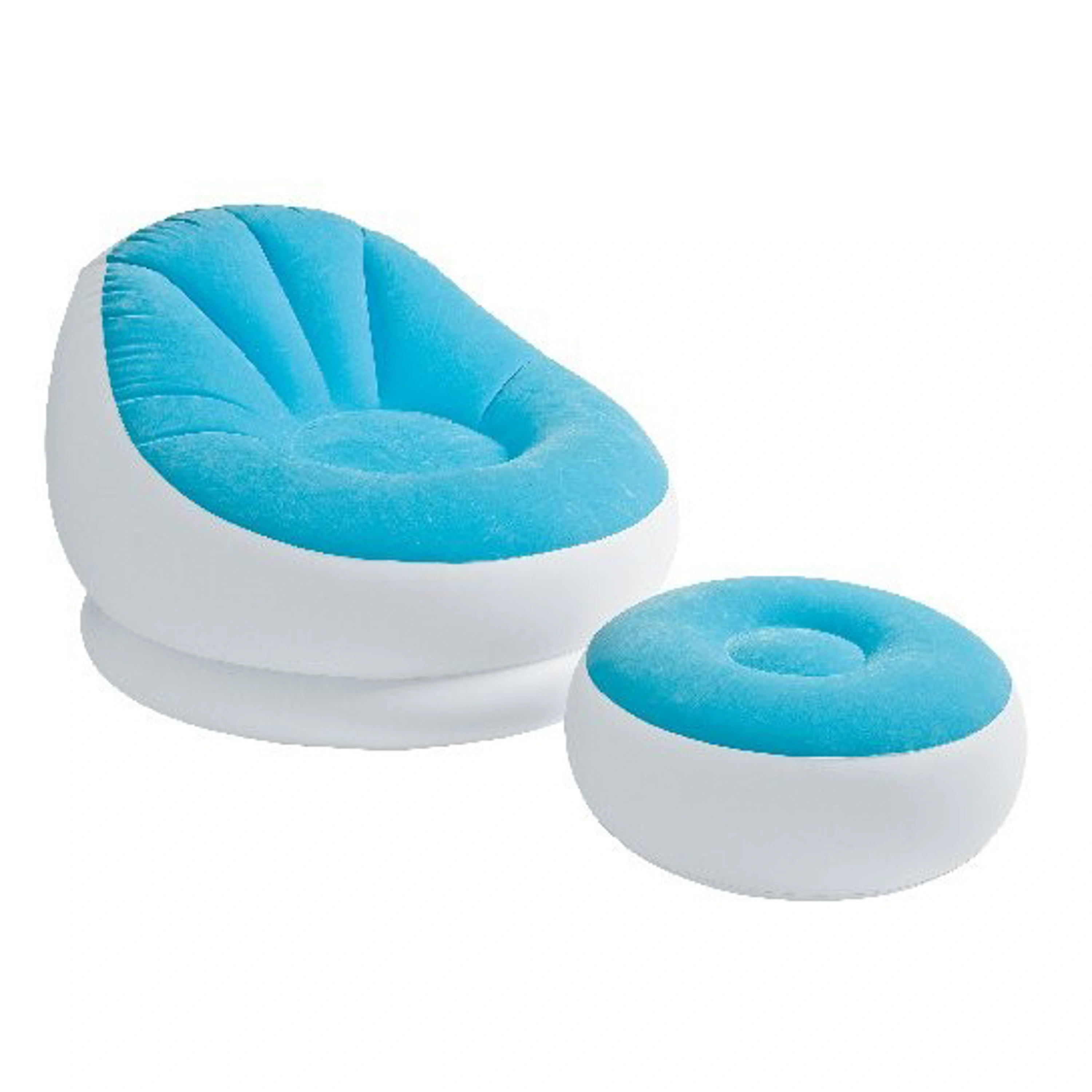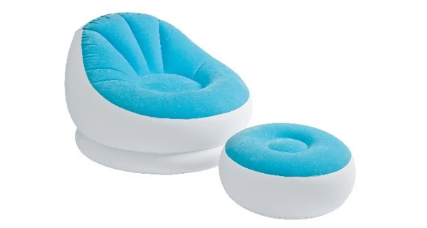 Nafukovací křeslo Intex Cafe je dodáváno ve 3 různých barvách - modrá, fialová, oranžová. Bez obsahu ftalátů. K tomuto křeslu je i otoman o velikost 28x64 cm.