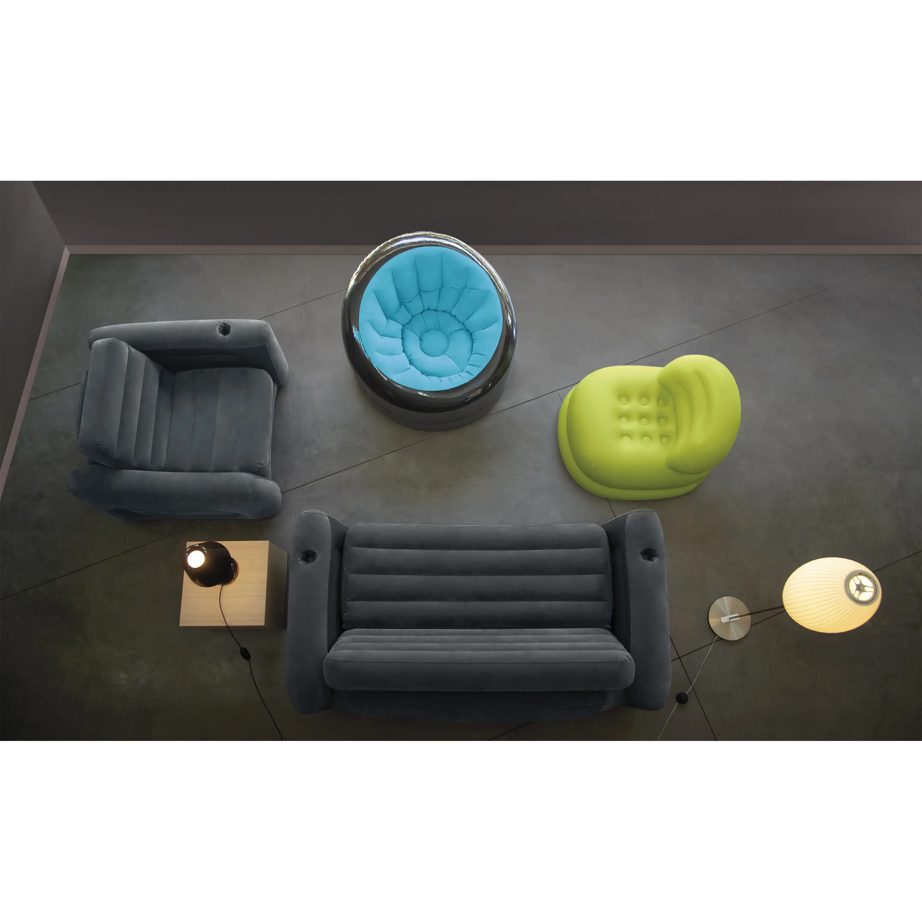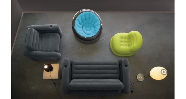 Stačí připojit pumpu a nábytek nafouknout. Snadno se přesouvá a je možné jej sbalit, aniž by zabíral prostor v domě.