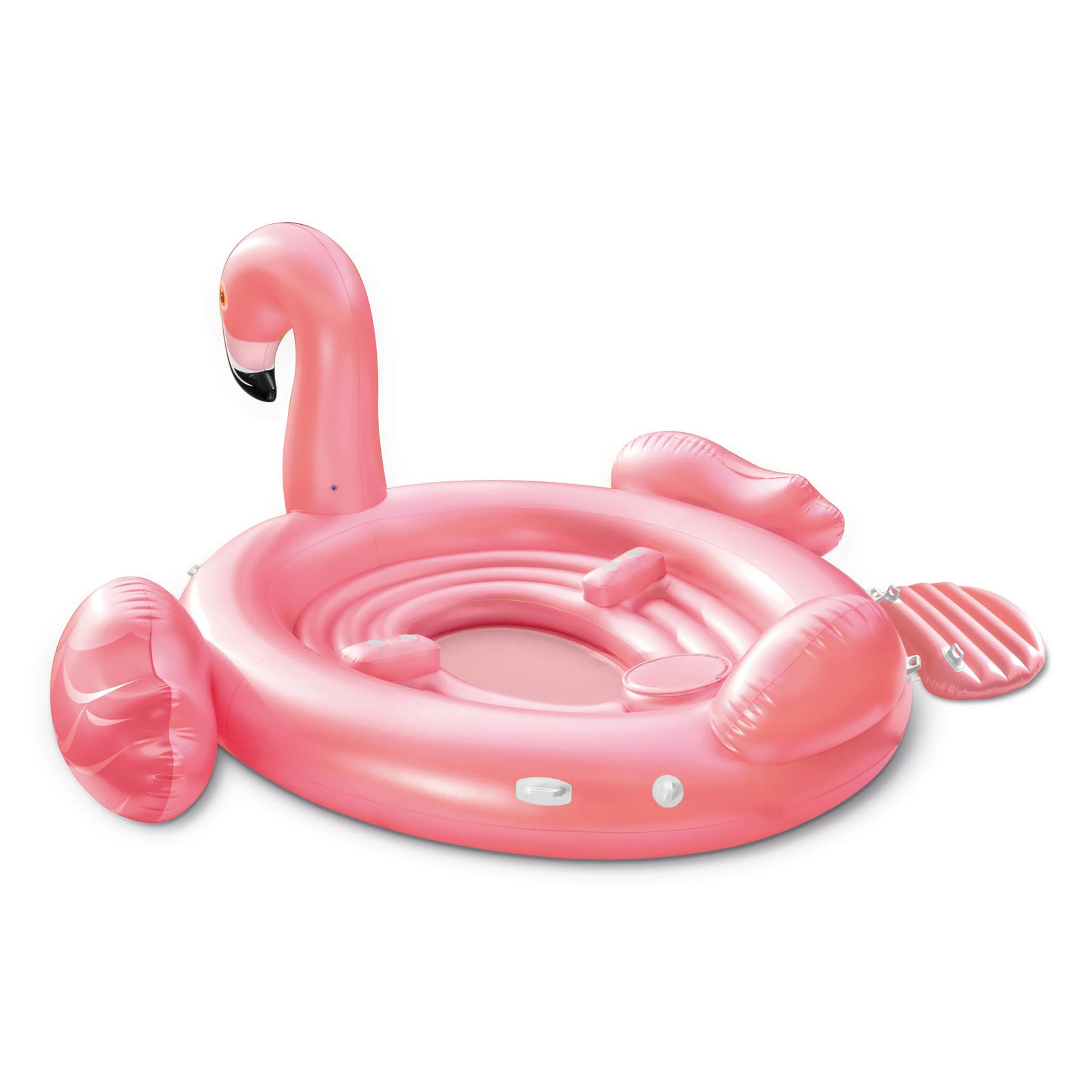 Párty plameňák je nafukovací lehátko vybavené lavicí s opěradlem, zabudovaným chladícím boxem a držáky na nápoje. Tento plovoucí nafukovací ostrov je určený pro 5 osob o nosnosti do 400 kg.