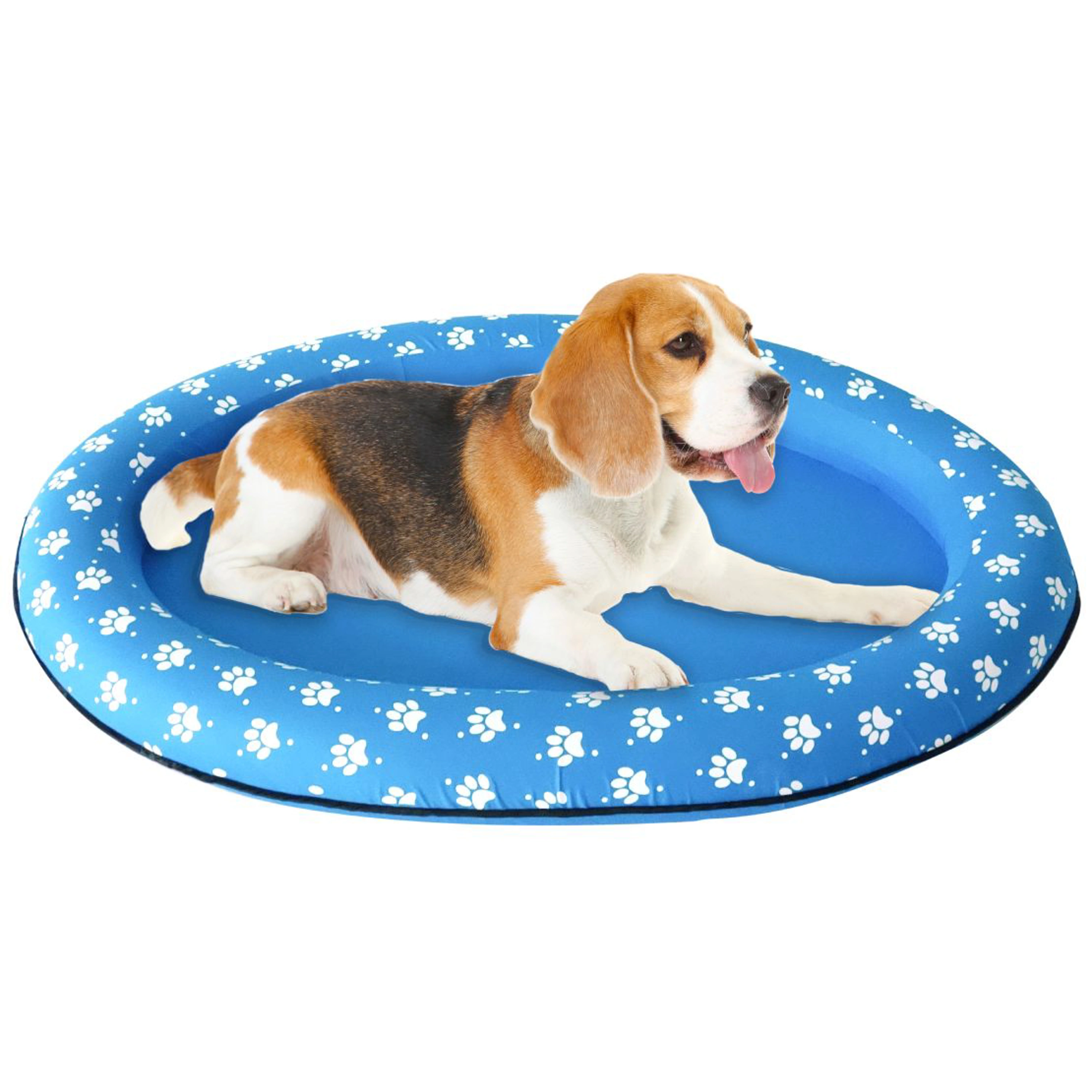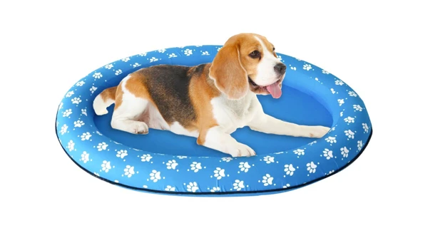 Nafukovací lehátko je ideální pro malá a středně velká plemena o hmotnosti do 30 kg. Lehátko má látkový potah, který je odolný k tlapkám a drápkům. Na spodní straně každé strany jsou dva otvory, které umožňují vytékání vody.