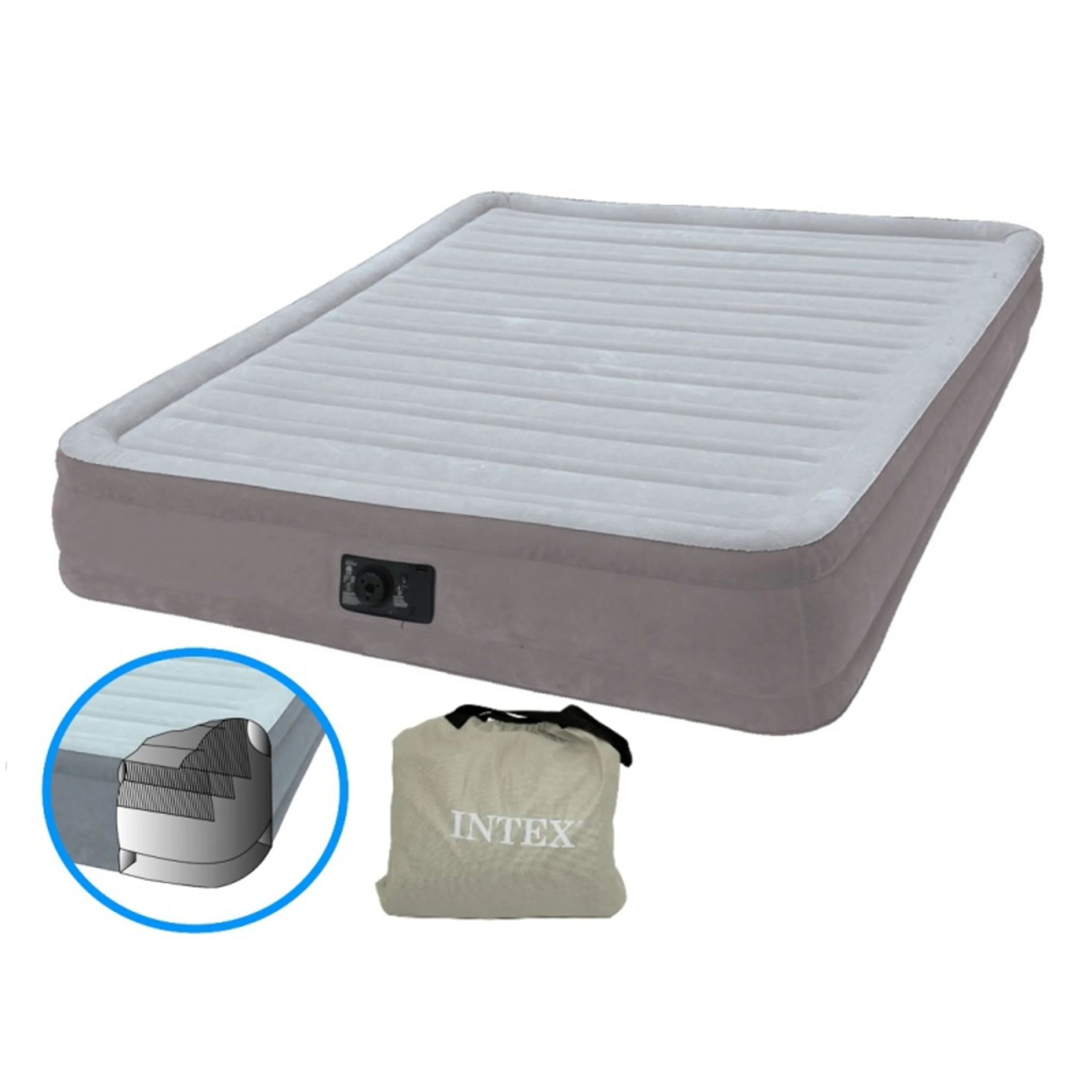 Nafukovací postel Comfort Plush Mid o rozměrech 152 x 203 x 33 cm. Voděodolná, povločkovaná vrchní, resp. boční strana s certifikátem kvality a tloušťkou 0,53 mm a vinylová spodní strana o tloušťce 0,38 mm zajišťují vysokou stabilitu. Nová konstrukce Fiber-Tech® umožňuje dokonale příjemný a relaxační spánek. Díky integrované vzduchové pumpě 230 V je nafukovací postel během několika minut připravená k použití. Přenosná taška usnadňuje přepravu.