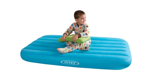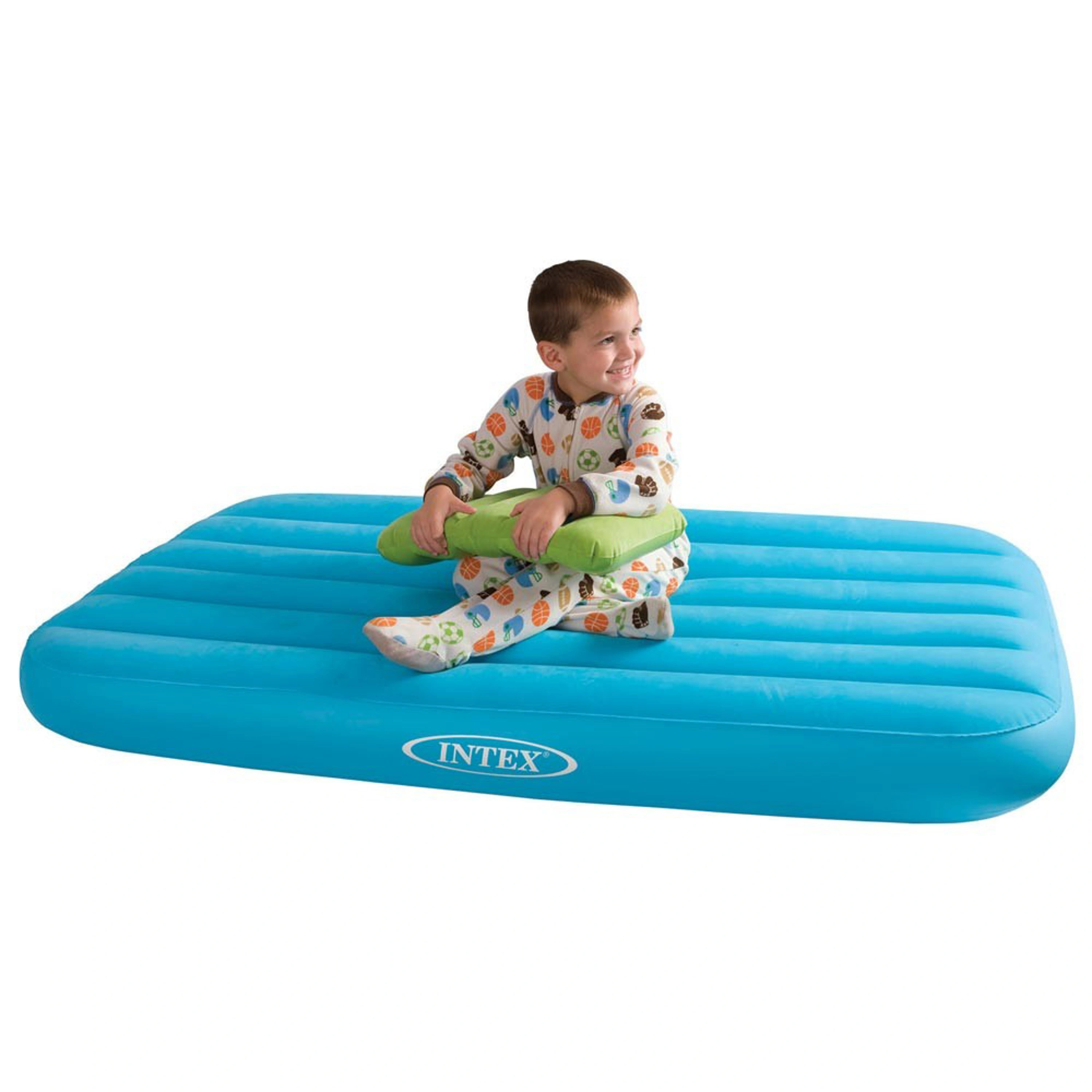 Dětská modrá nafukovací postel Intex Cozy Kids je velice praktickou záležitostí. Postel/matraci lehce vyfouknete a můžete ji vzít kamkoli na cesty, mít ji připravenou doma pro návštěvy a pokud budete mít trpělivost se sušením, pak si na ní můžete i polenošit ve vodě. Pro větší pohodlí má matrace na povrchu viskózový povlak. Bez obsahu ftalátů.