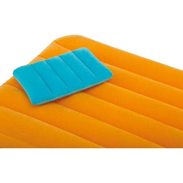 Dětská oranžová nafukovací postel Intex Cozy Kids je velice praktickou záležitostí. Postel/matraci lehce vyfouknete a můžete ji vzít kamkoli na cesty, mít ji připravenou doma pro návštěvy a pokud budete mít trpělivost se sušením, pak si na ní můžete i polenošit ve vodě. Pro větší pohodlí má matrace na povrchu viskózový povlak. Bez obsahu ftalátů.