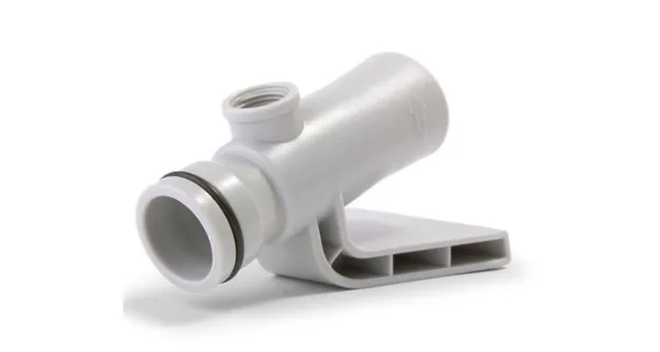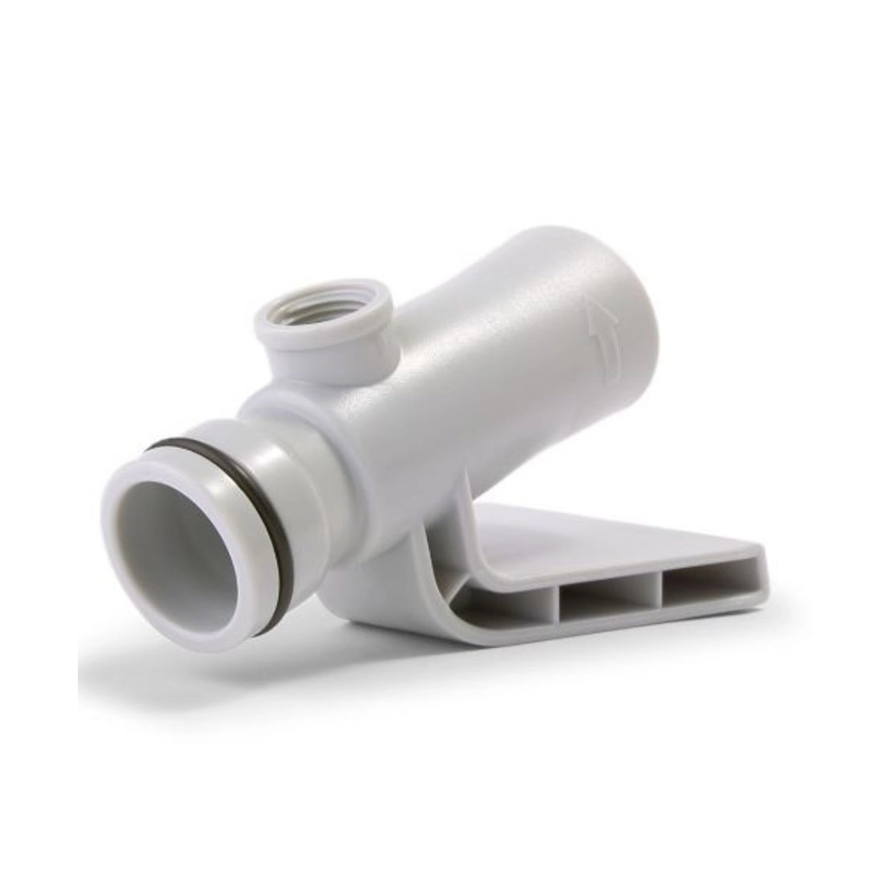Z jedné strany se napojuje na stěnu bazénu s průchodem 32 mm a na druhé straně na hadici 32 mm, která vede ke kartušové filtraci. Zahnutá část slouží jako opěrka (je opřená o stěnu bazénu).