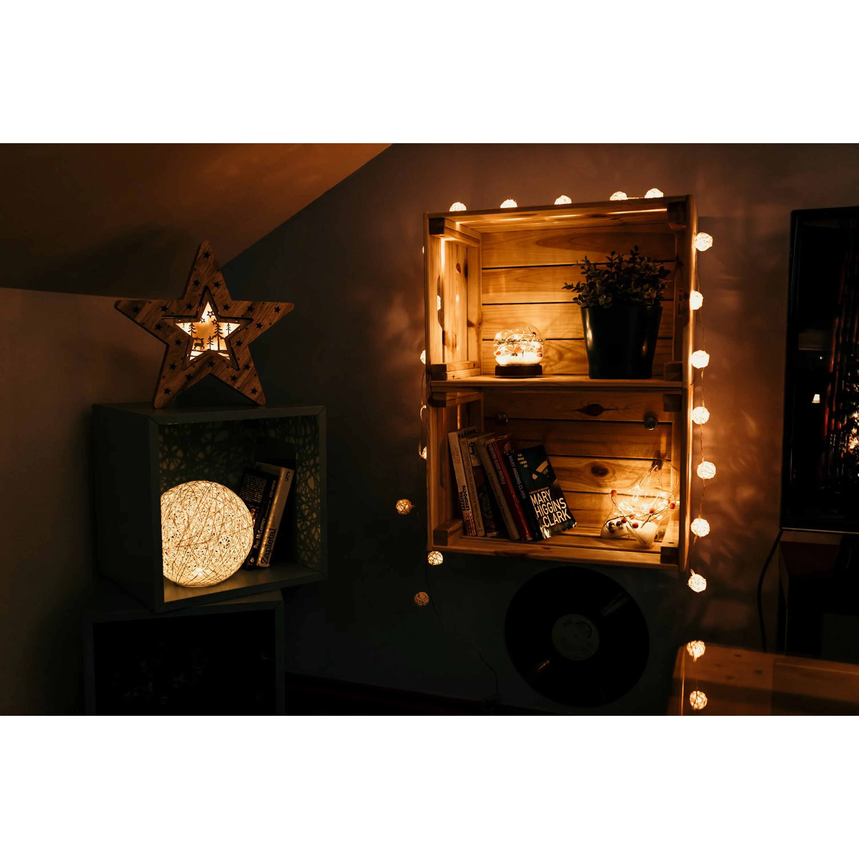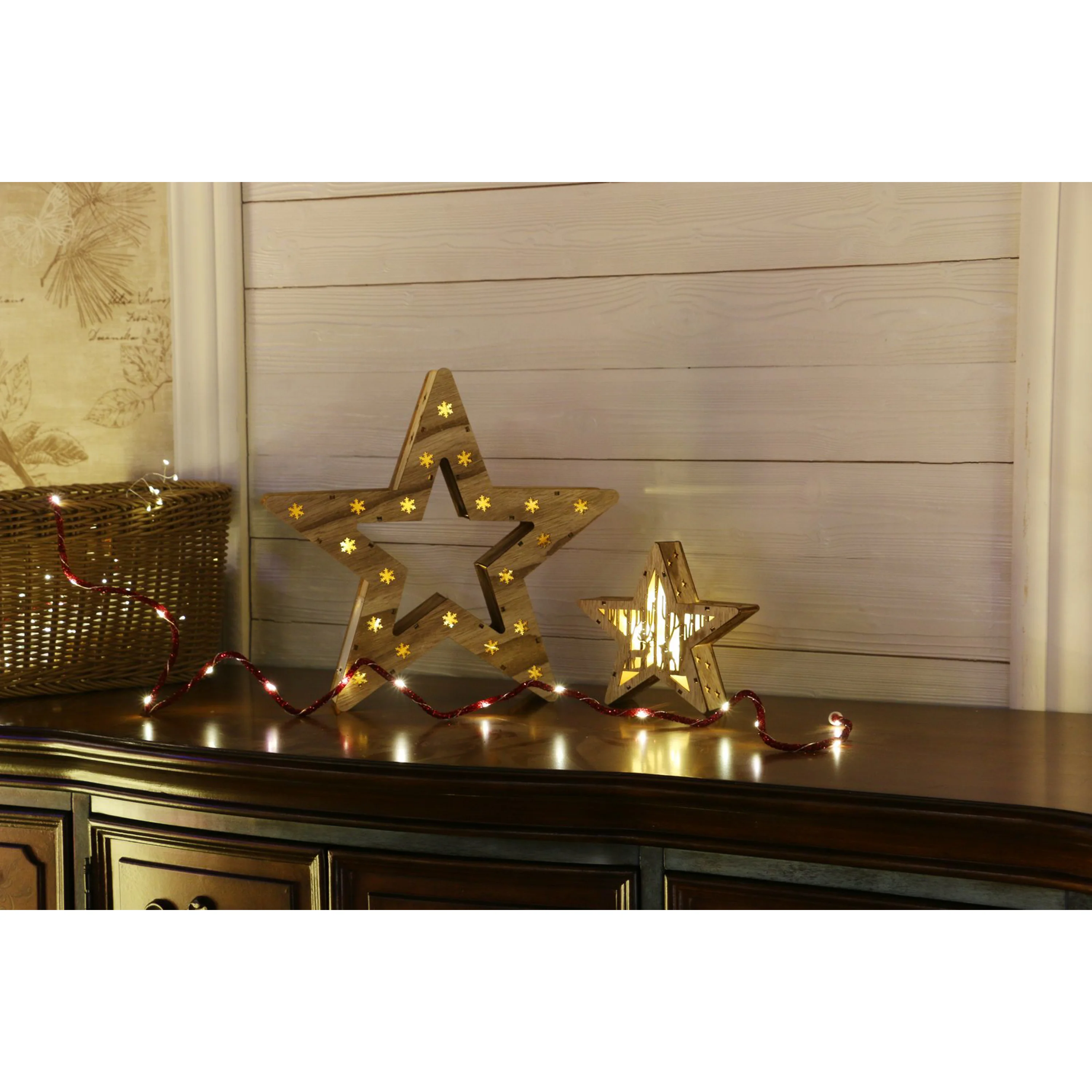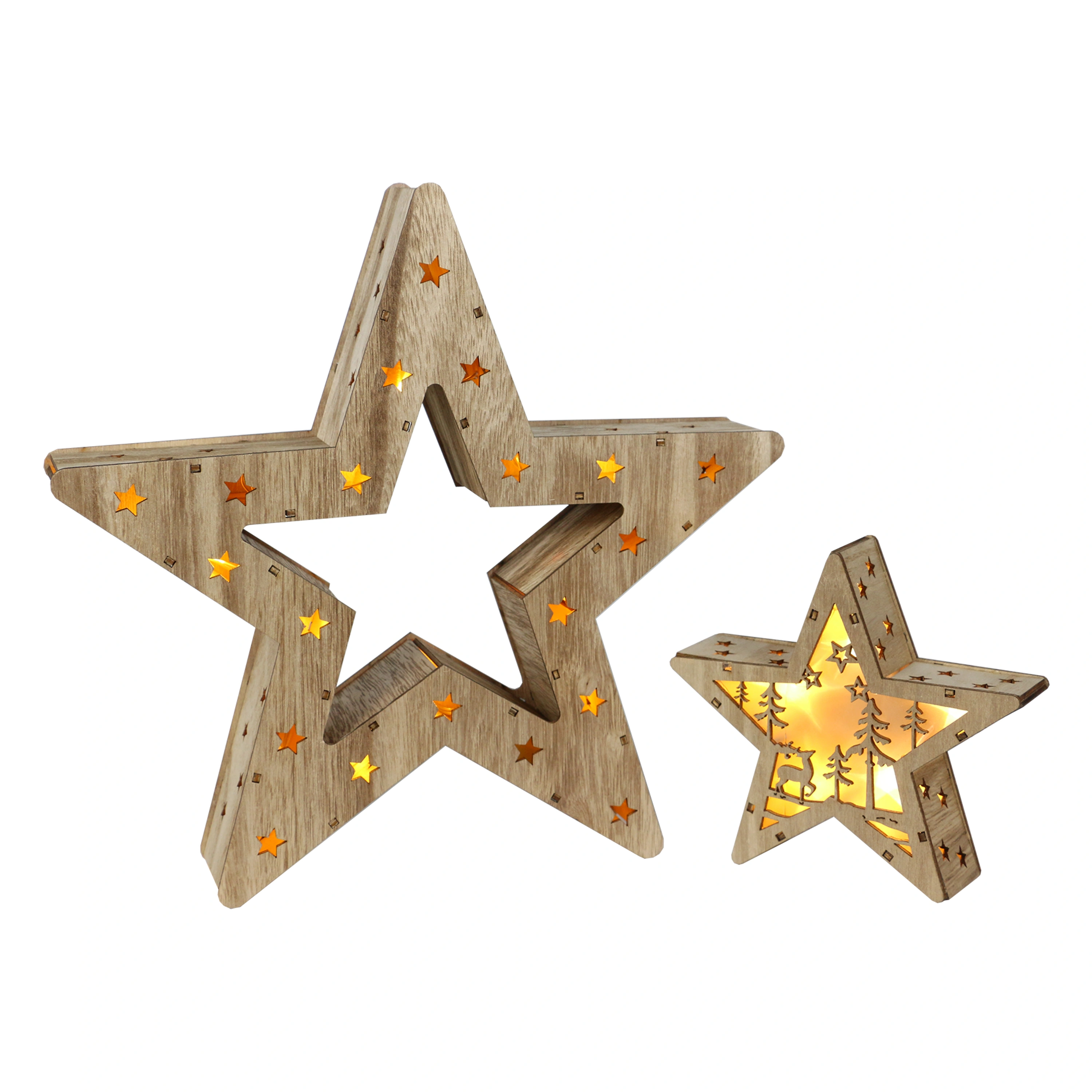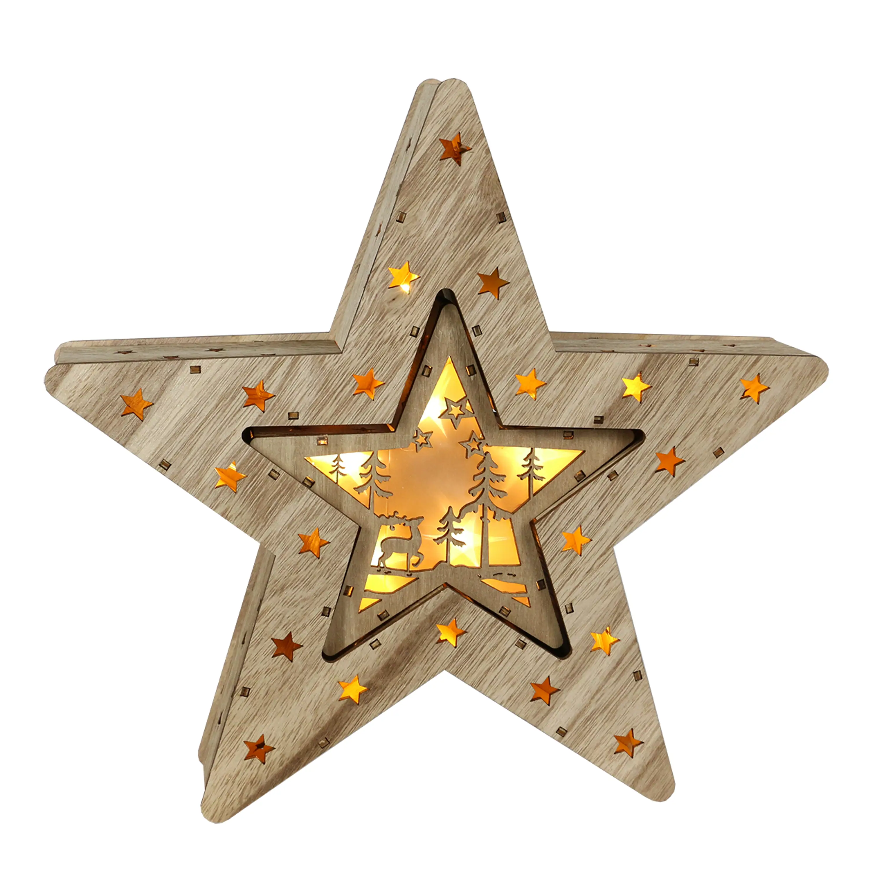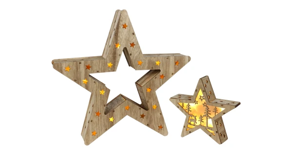 Dřevěná hvězda v přírodním dekoru, která ozáří váš interiér. Tato krásná vánoční ozdoba má 16 LED, které svítí teplou bílou barvou.