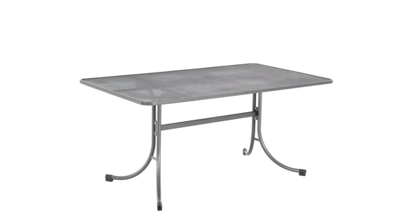 Elegantní stůl s deskou s oky ve tvaru kosočtverce je vybaven pevným kovovým rámem. Stůl ve tvaru obdélníku s oblými rohy vytvoří vkusnou sestavu například v kombinaci s ostatními tahokovými křesly. Nábytek odolný vůči vodě i slunečnímu záření je zcela bezúdržbový.