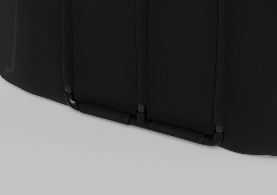 Ochlazovací káď je vyrobena z pečlivě vybraných materiálů, které zajišťují dlouhou životnost a vysoký komfort při používání. Dvě vrstvy PVC zabraňují navlhnutí a zlepšují termoizolační funkci česané bavlny, která udržuje požadovanou teplotu a brání tepelným ztrátám. Voděodolný plášť eliminuje prosakování vody do dalších vrstev, což umožňuje bezproblémové využití za všech podmínek.
