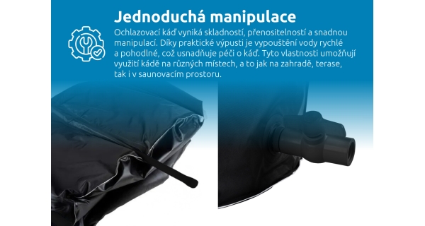 Díky odolnosti vůči teplotám v rozmezí -20 °C až 50 °C můžete káď využívat po celý rok, a to bez ohledu na počasí. Praktická výpusť umožňuje rychlé vypuštění vody, zatímco vnější kryt chrání káď před nečistotami, prachem a hmyzem. Termokryt navíc udržuje optimální teplotu vody, minimalizuje tepelné ztráty a zvyšuje energetickou úspornost. Tyto vlastnosti společně s jednoduchou manipulací dělají z ochlazovací kádě ideálního společníka na zahradu, terasu i do saunovacího prostoru.
