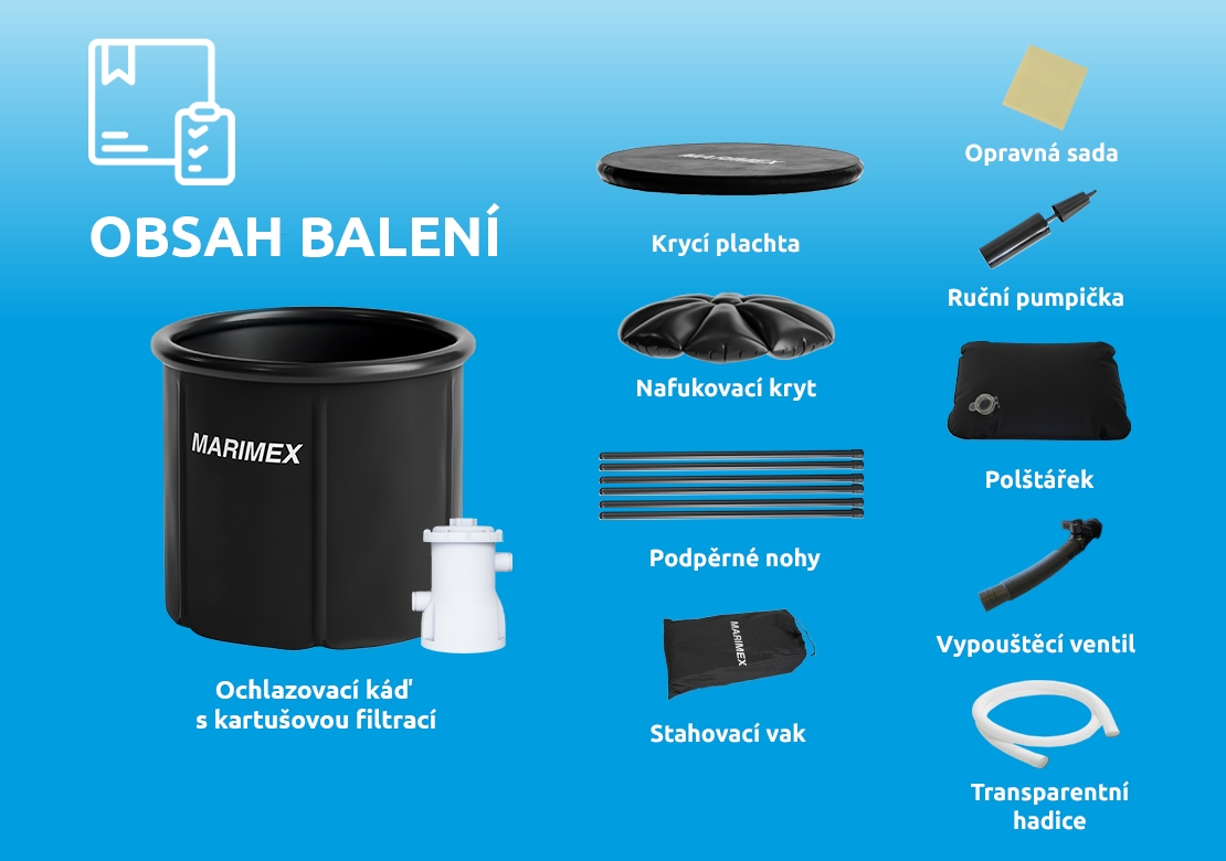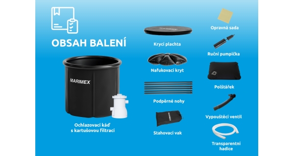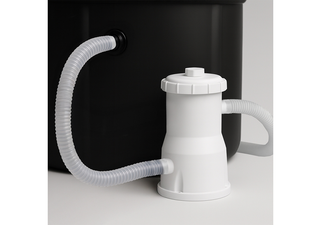 Součástí balení ochlazovací kádě je kartušová filtrace (včetně hadic a všech propojovacích dílů), která se snadno napojuje na průchody stěnou. Díky tomu zůstává voda v kádi čistá a průzračná po delší dobu. Filtrace efektivně odstraňuje nečistoty a zajišťuje pohodlnější a hygieničtější používání bez nutnosti časté výměny vody.