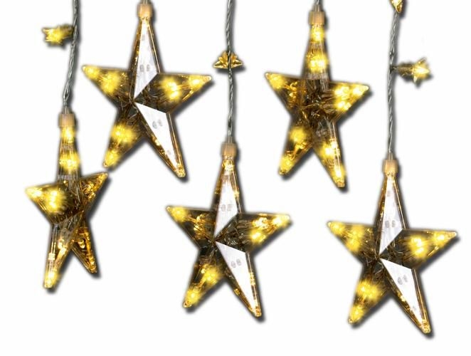 Překrásná vánoční světelná dekorace vhodná k zavěšení - sada hvězd - 5 velkých hvězd a 25 malých hvězdiček. Dekoraci můžete zavěsit do okna, na dveře nebo jen tak na zeď.