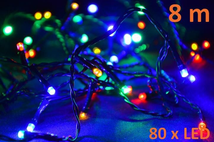 Osmimetrový barevný vánoční řetěz prozáří každý tmavý kout veselými barvami LED diod. Je naprosto jedno, zda dekoraci umístíte do pokoje, nebo nazdobíte terasu, výsledek bude zaručeně úchvatný. Řetěz splňuje parametry pro vnitřní i venkovní použití.