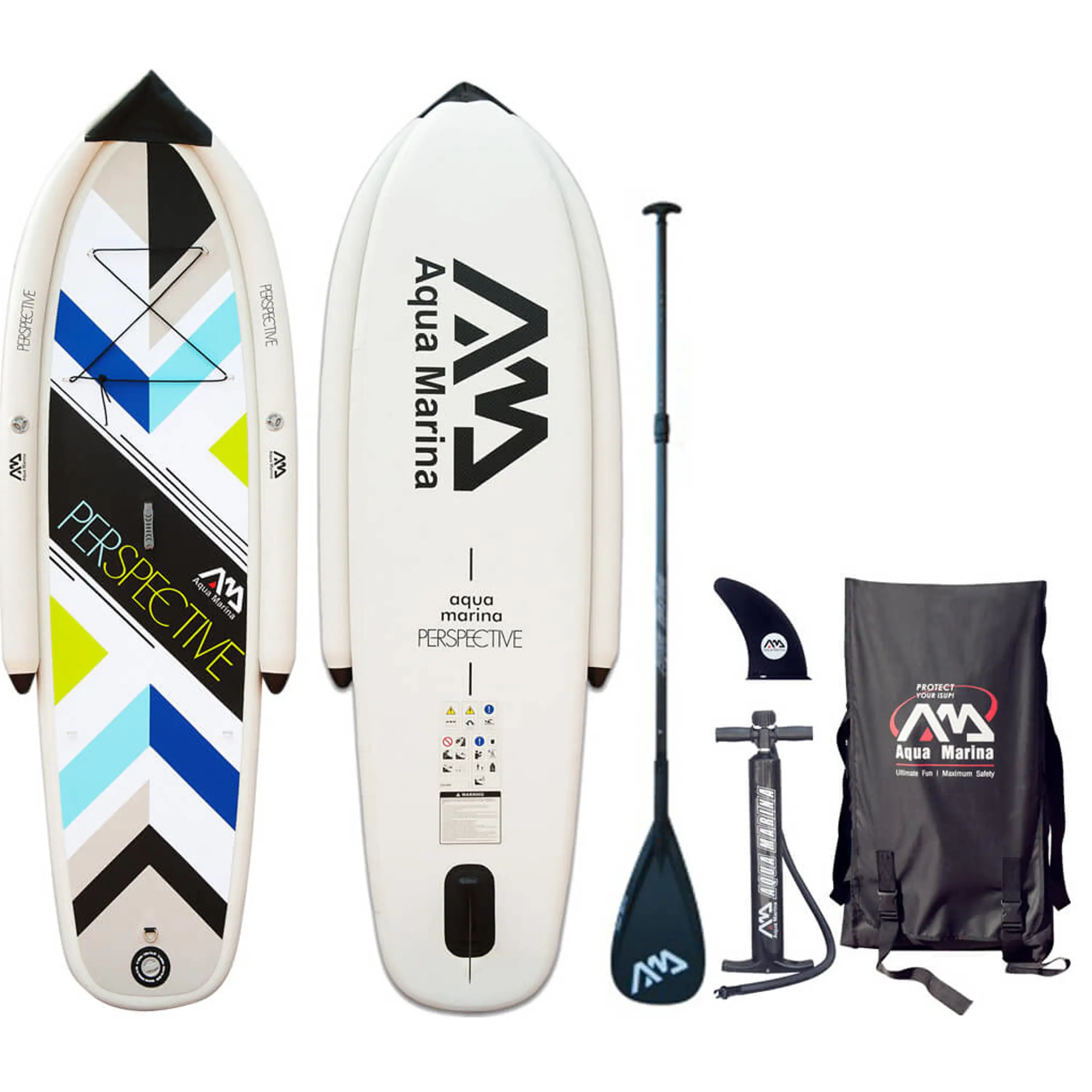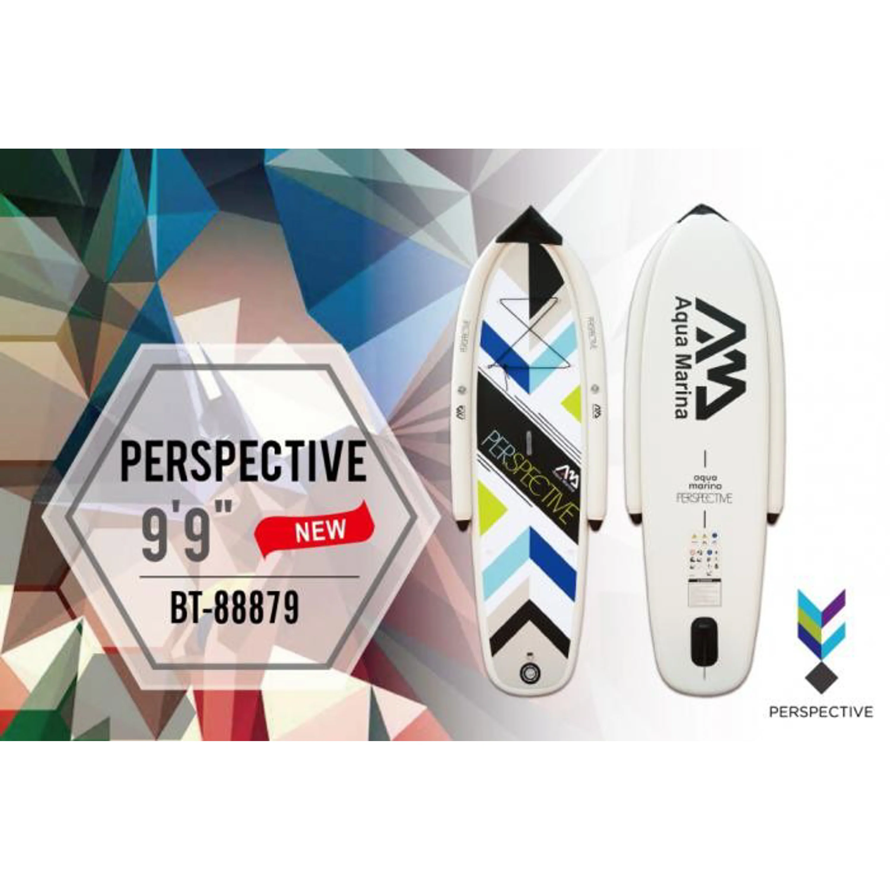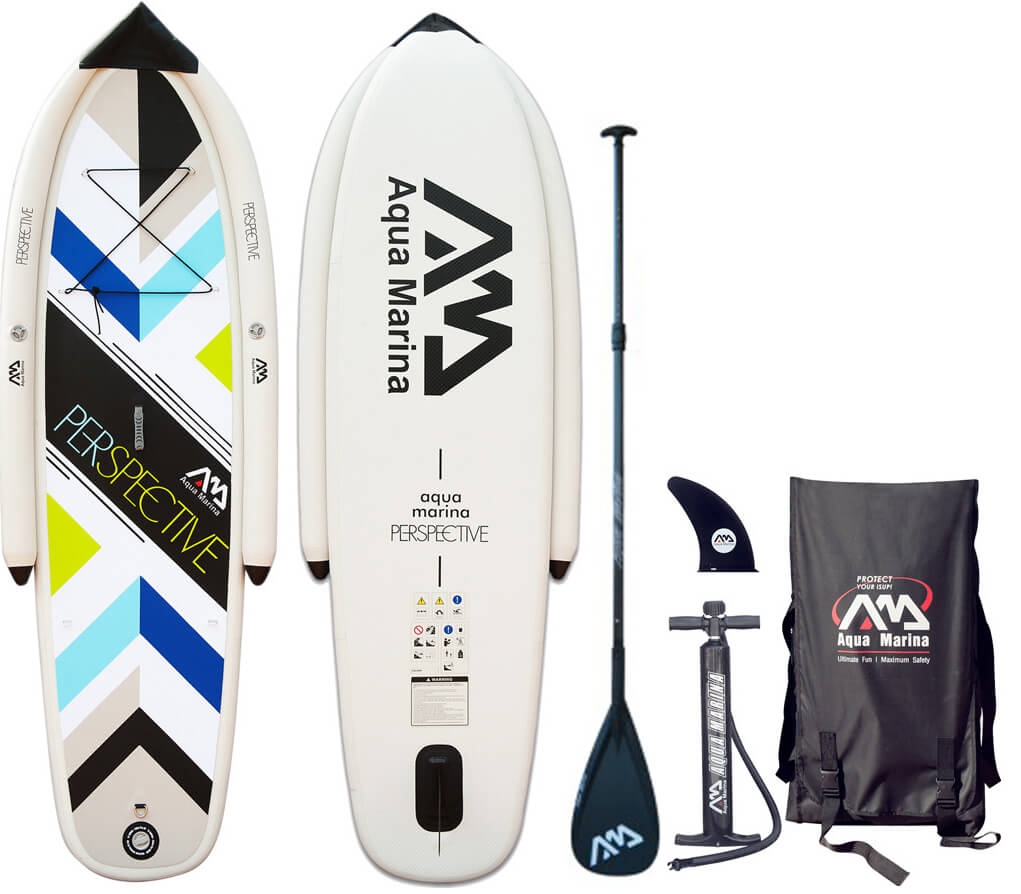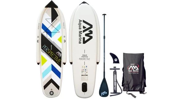 Novinkou mezi nafukovacími paddleboardy Aqua Marina pro rok 2016 je model Perspective, který je určen pro začátečníky a nové vodáky. Díky dvoum nezávislým plovákům, které zaručují dodatečnou stabilitu, umožňuje tento board budování důvěry a rychlé učení tohoto nesmírně populárního sportu. Tento jednokomorový iSUP je vyroben z dvojitého DROP STICH PVC, který je odolný vůči soli, UV záření, a je možné ho nafouknout na velmi vysoký tlak až 15 PSI. Protiskluzový nášlap z měkké EVA pěny umožňuje skvělou stabilitu a jistotu při pádlování. Board je osazen D-kroužkovými úchyty na přídi a jedním očkem na zádi pro připevnění bezpečnostního vodítka, elastické bungee šňůry nebo menšího zavazadla. Pryžová rukojeť uprostřed prkna v kombinaci s nízkou hmotností usnadňuje jeho manipulaci při přenášení. V kompletu najdete tašku, ruční nafukovací pumpu s tlakoměrem, lepící sadu na opravy a elestické lanko pro uchycení zavazadel.