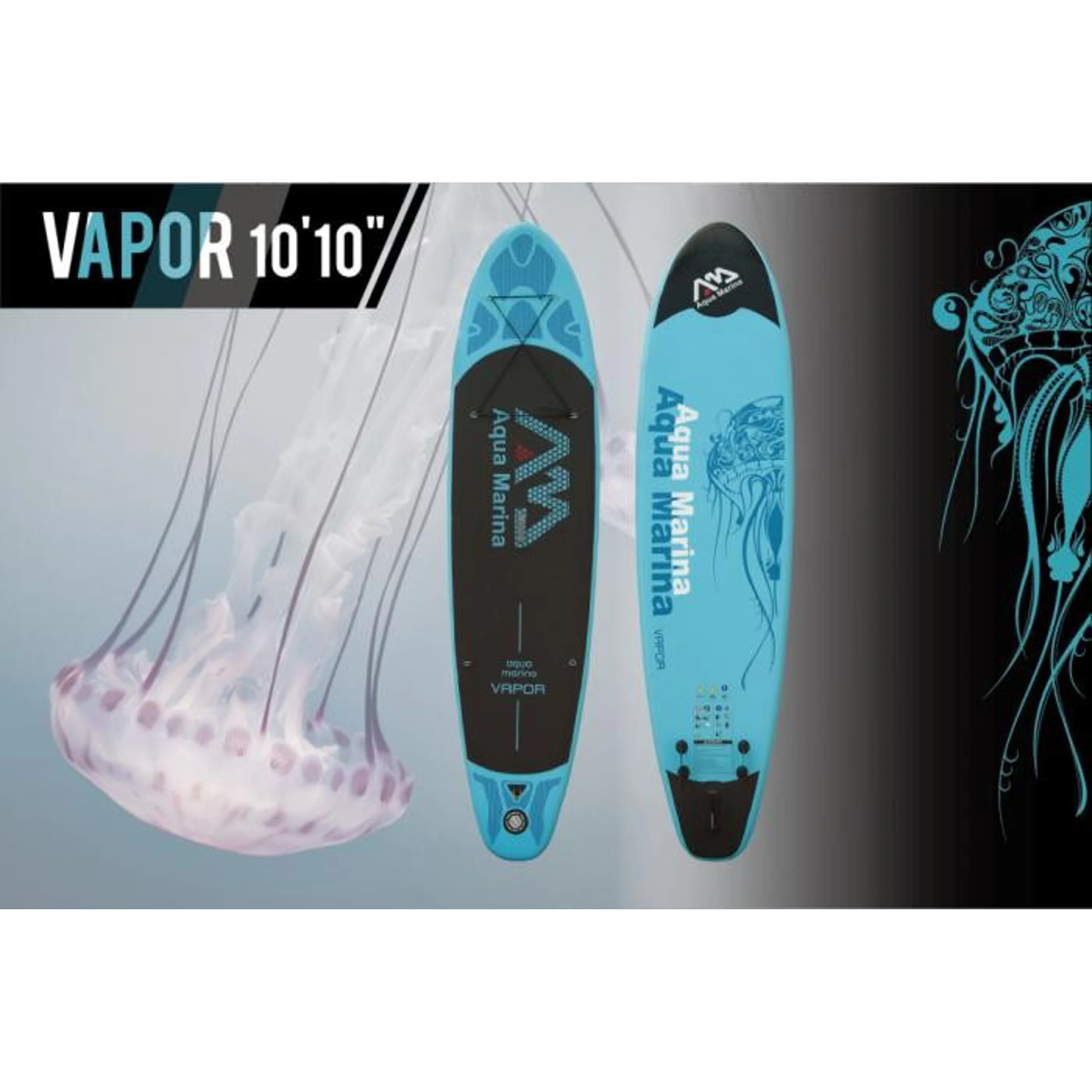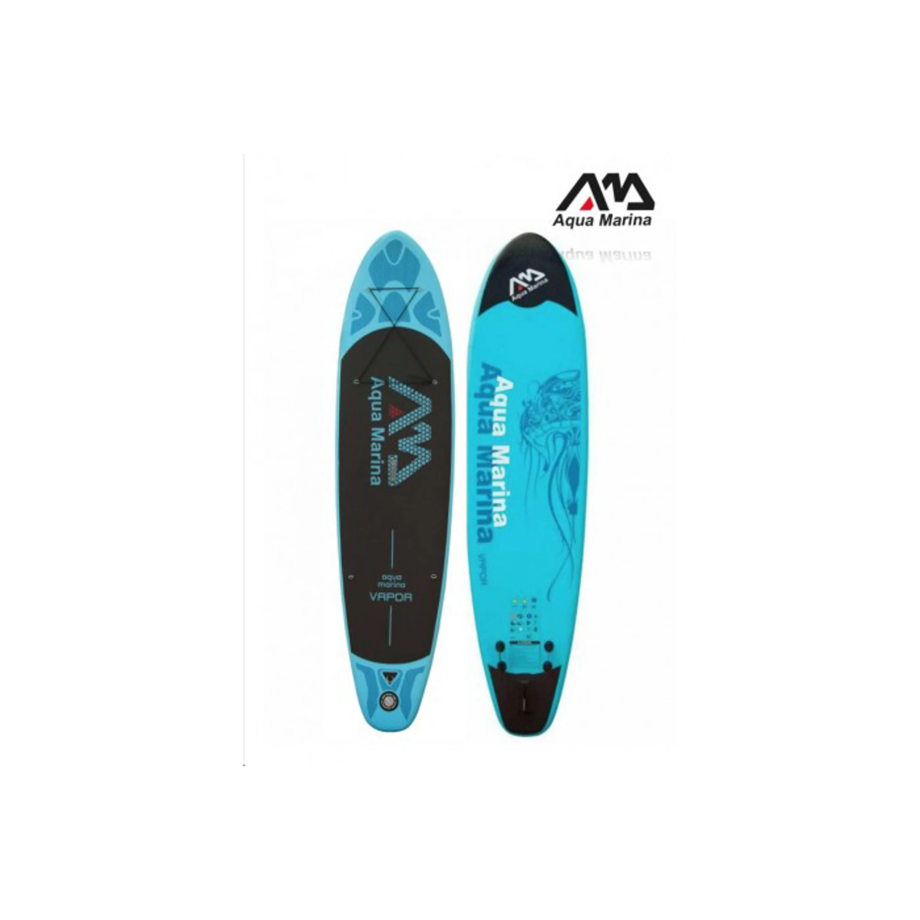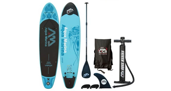 Nástupce legendárního a nejprodávanějšího paddleboardu loňského roku (SPK2) iSUP AQUA MARINA VAPOR je určený začátečníkům i pokročilým pro jízdy v klidnějších vodách i sjíždění menších vln. Skvělé řešení pro ty, kteří si chtějí užívat pádlování na vodě, ale nemají dostatek místa v autě. Velmi přívětivý model pro celou rodinu v moderním designu. Paddleboard je díky ploché široké přídi velmi stabilní, skvěle zatáčí a zárveň je dostatečně rychlý. Board je vyroben z prvotřídních matriálů odolných vůči slané vodě i UV záření, snadno jej nafouknete, sfouknete a sbalíte do praktické tašky. Protiskluzový nášlap z EVA pěny poskytuje pohodlí, stabilitu a bezpečnost. Prkno je osazeno D-kroužkovými úchyty na přídi a zádi pro připevnění bezpečnostního vodítka, elastické bungee šňůry apod. Pryžová rukojeť uprostřed prkna v kombinaci s nízkou hmotností usnadňuje jeho přenášení. V balení je navíc brašna, ruční nafukovací pumpa s tlakoměrem, lepící sada na opravy a elestické lanko pro uchycení zavazadel. Nejlepší kombinace poměru výkon/cena, doporučujeme!