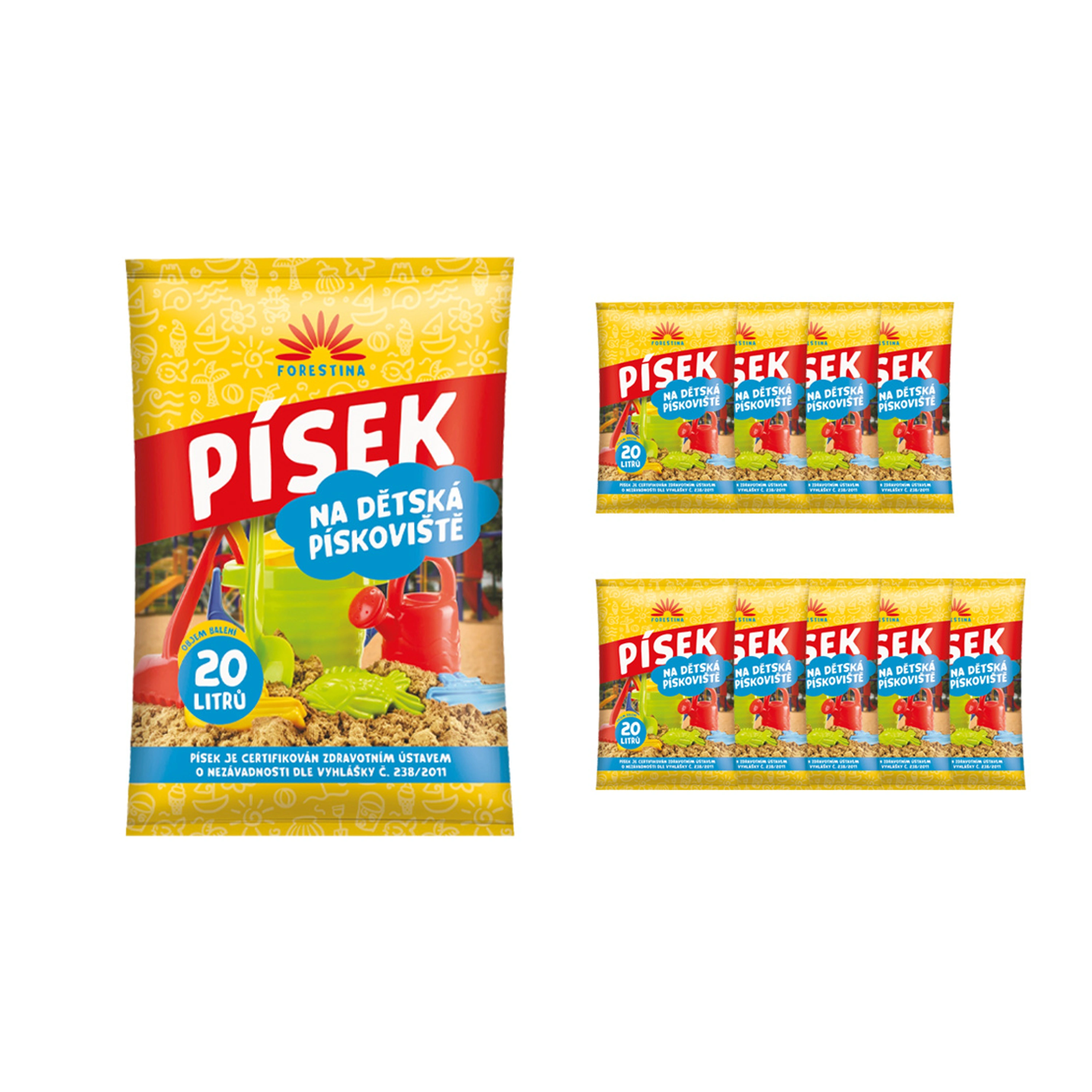 Písek do dětských pískovišť je vhodný k vytváření báboviček nebo stavění hradů. Jedná se o přírodní vypraný písek, který je upraven pouze proséváním. Písek je certifikován zdravotním ústavem o nezávadnosti dle vyhlášky č. 238/2011. Objem balení je 20 litrů.