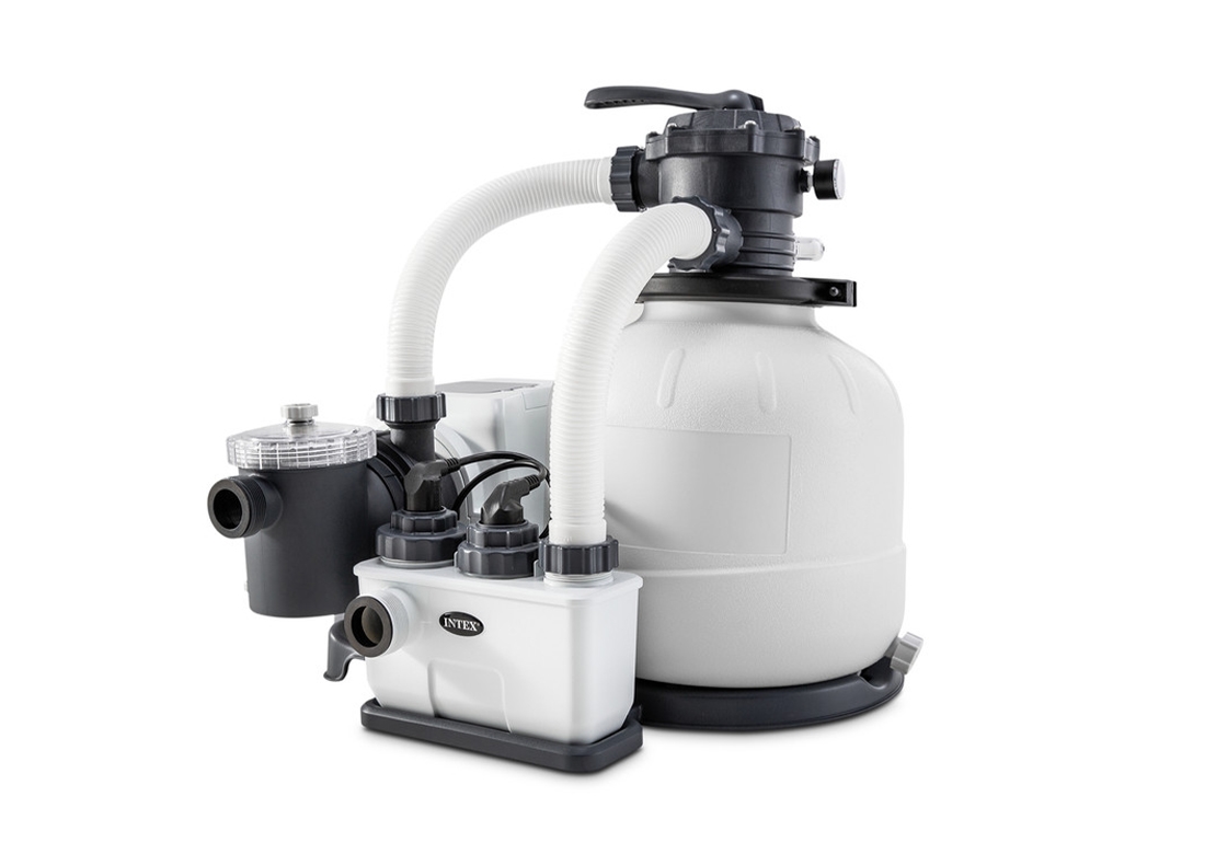 Velmi výkonná písková filtrace Intex QX2600 se zabudovaným solinátorem zajistí optimální filtraci pro váš bazén a omezí používání bazénové chemie.