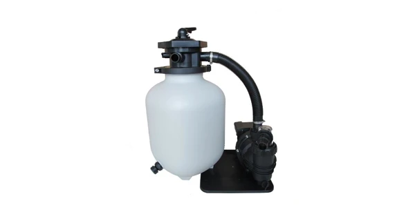 Pískové filtrační zařízení, motor čerpadla s hrubým předfiltrem, 6-ti cestným ventilem a plastovou základnou.