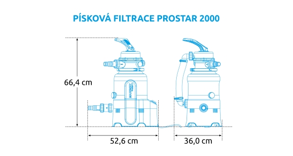 Písková filtrace ProStar 2000, vyrobená v České republice je svým výkonem vhodná pro bazény do objemu 8 m3. Ideálním příslušenstvím je tedy především pro menší bazény.