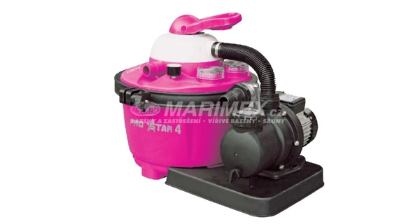 ProStar 4 patří mezi naše nejprodávanější filtrace. Je vhodná pro všechny druhy nadzemních bazénů do objemu 20 000 litrů. Růžová limitovaná edice těchto oblíbených filtračních systému zaujme na první pohled. Růžovou barvu ocení každá malá princezna. Výbavu tvoří předfiltr hrubých nečistot, nádoba, která pojme 17 kg filtračního písku, šesticestný ventil (proplach, filtrace, čištění, vypnutí, zpětný chod, vypouštění) a tlakoměr. Součástí balení jsou přechodky na hadice o průměru 32/38 mm.