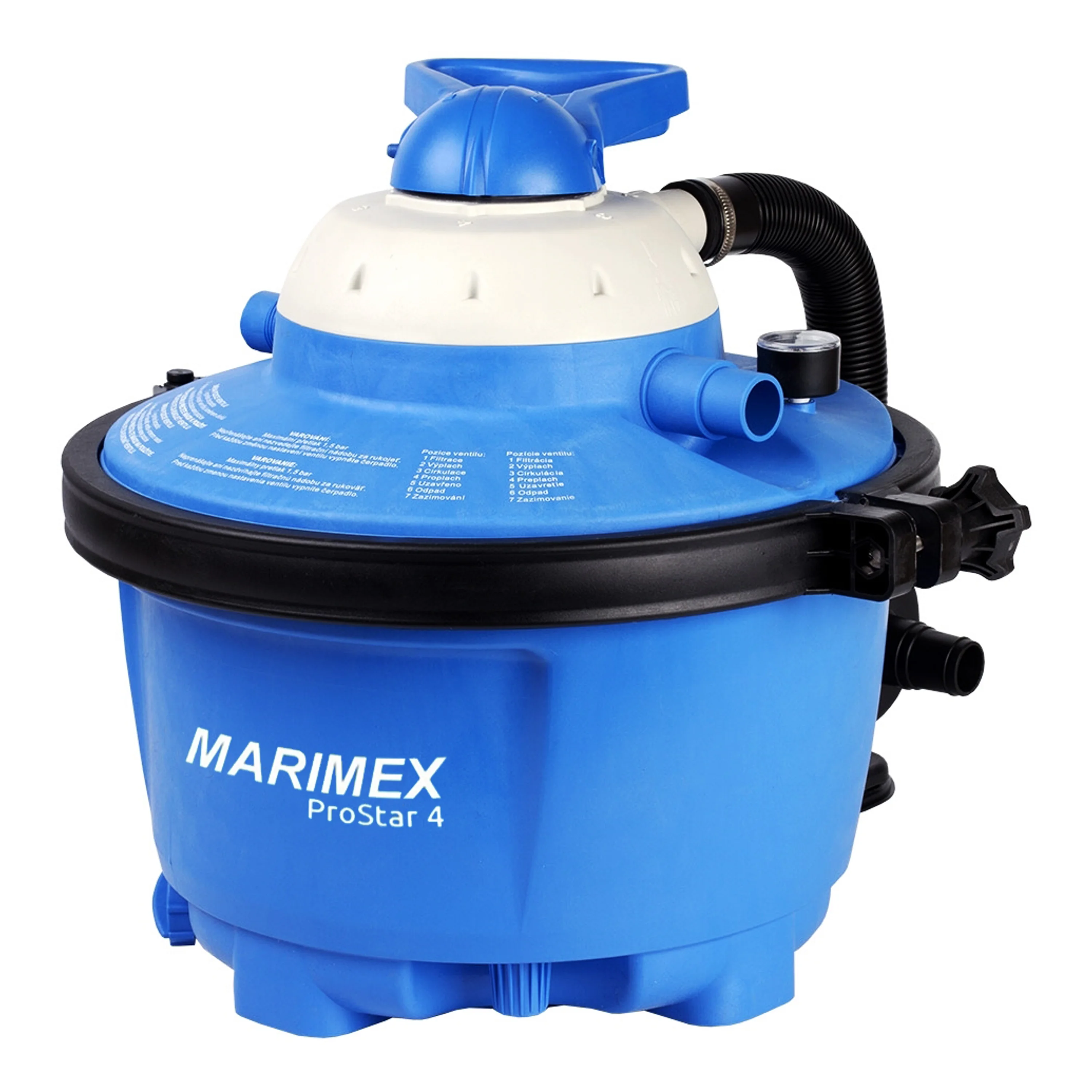 Filtrační systém pískové filtrace ProStar 4 se skládá z filtrační nádoby, do které se vejde 16 - 17 kg filtračního písku. Nádoba je vyrobena z vysoce kvalitního polypropylenu (PP). Je beze švů, odolává korozi a běžně dostupným chemikáliím používaných v bazénech.