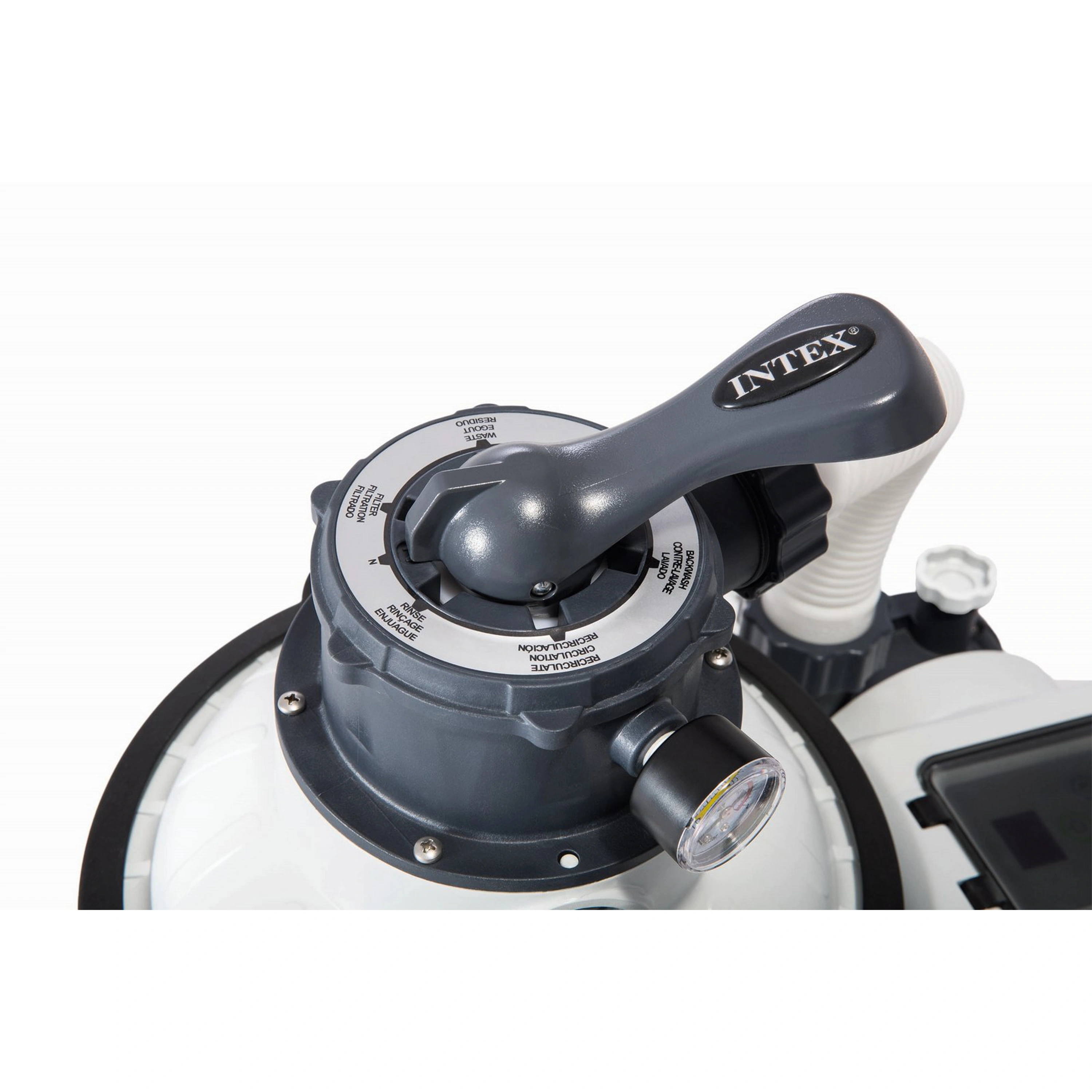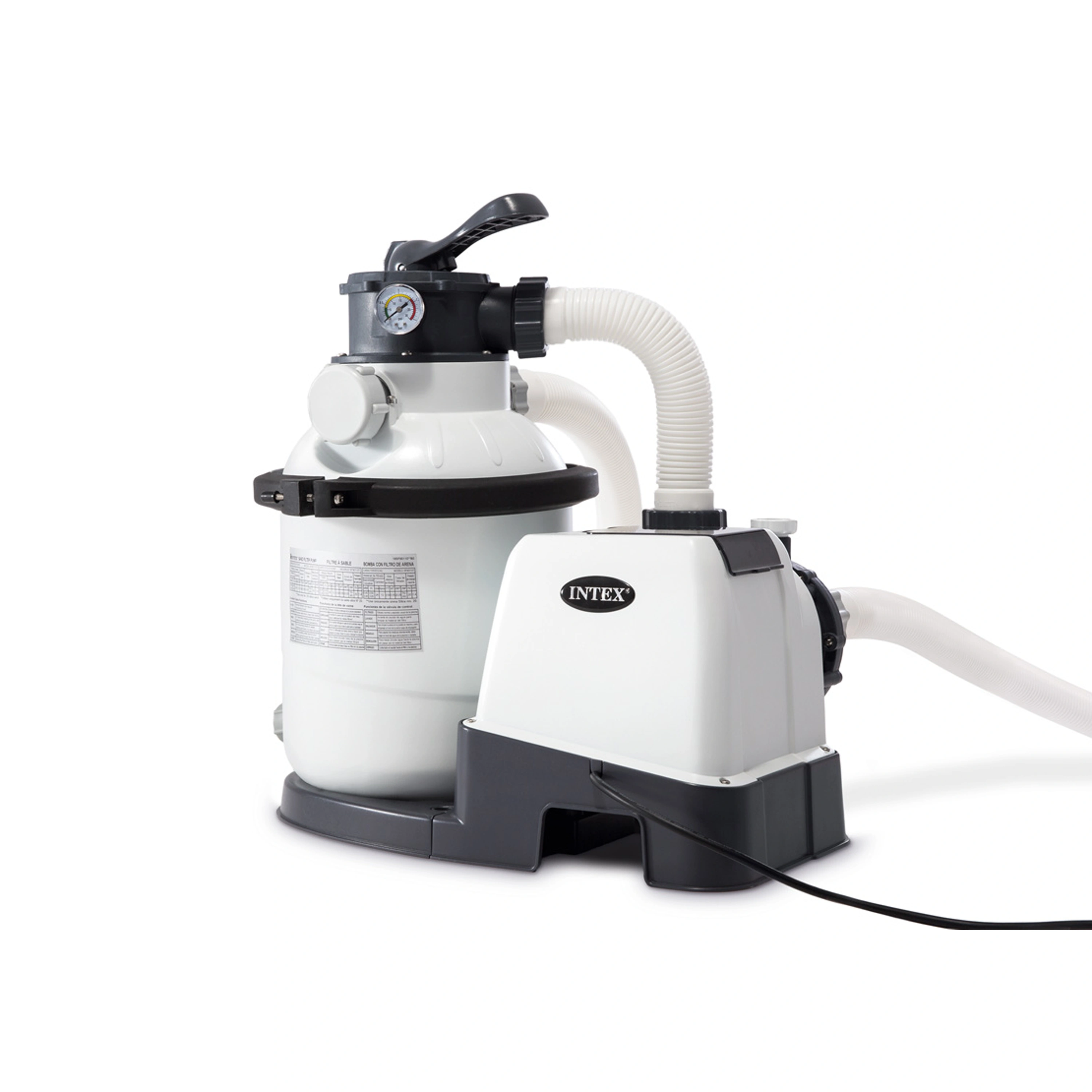 Kvalitní a spolehlivá písková filtrace od firmy Intex.  Filtrace přefiltruje 4 000 litrů (4 m3bazénové vody za hodinu. Filtrace je určena pro bazény do objemu 20 000 litrů. Příkon filtrace je pouhých 190 W.  Filtrace se skládá z filtrační nádoby, čerpadla a šesticestného ventilu. Dodávána je v barvě šedé.