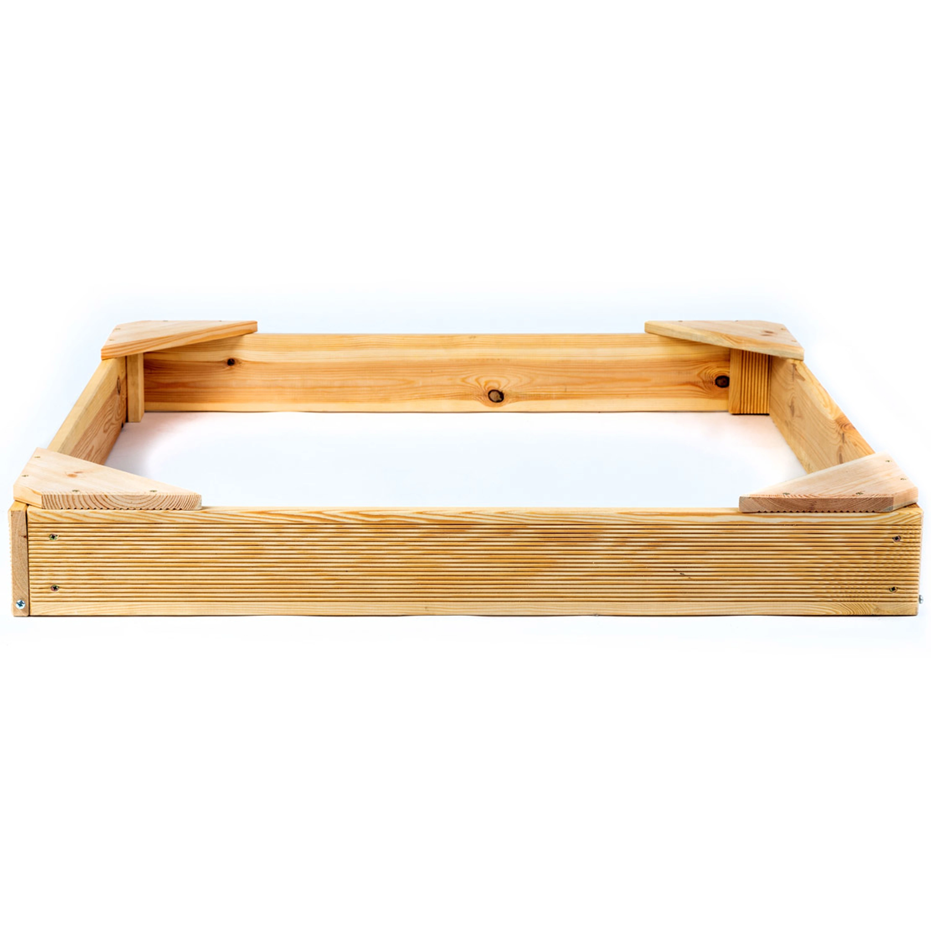 Malé dřevěné čtvercové pískoviště o rozměrech 100 x 100 x 14 cm udělá radost vašim dětem na každé zahradě. Pískoviště je vybaveno zpevněnými rohy na čtyřech stranách.