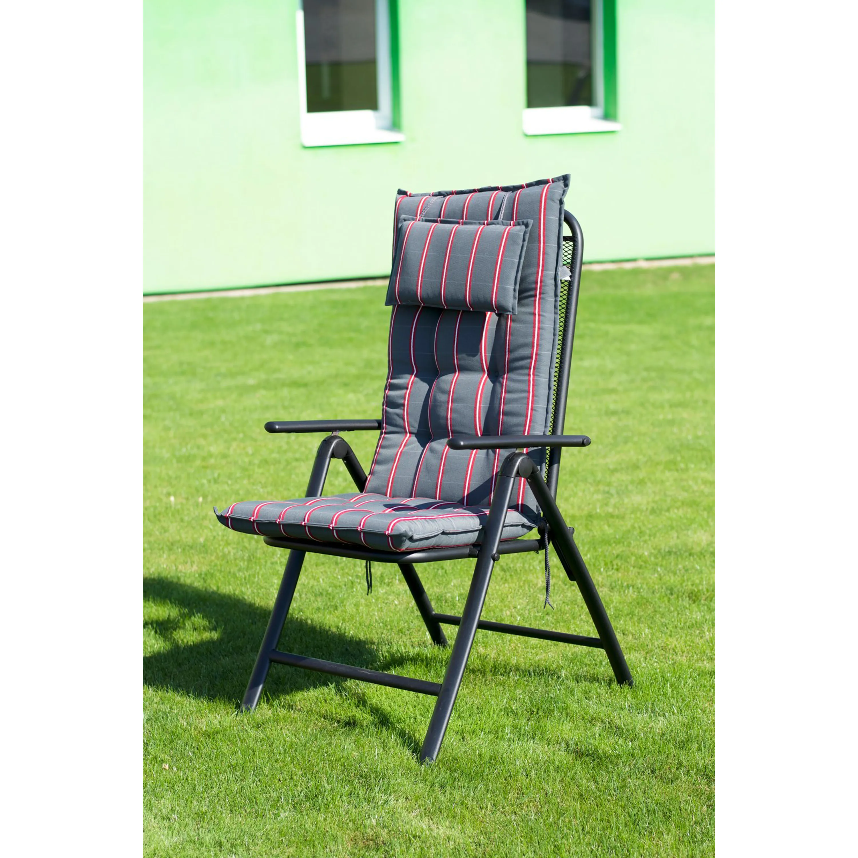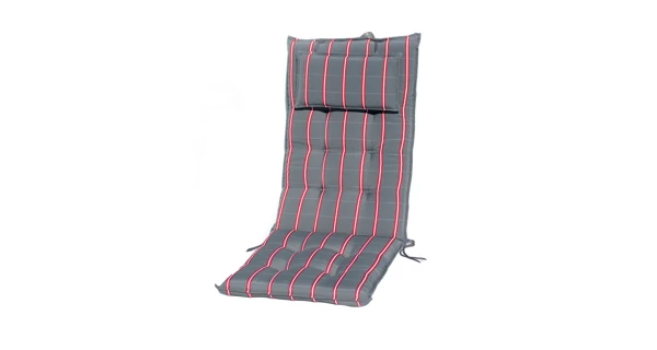 Kvalitní poduška na vysoké křeslo s polštářkem pro lepší relax. Šedý podklad s červeno-bílými pruhy.