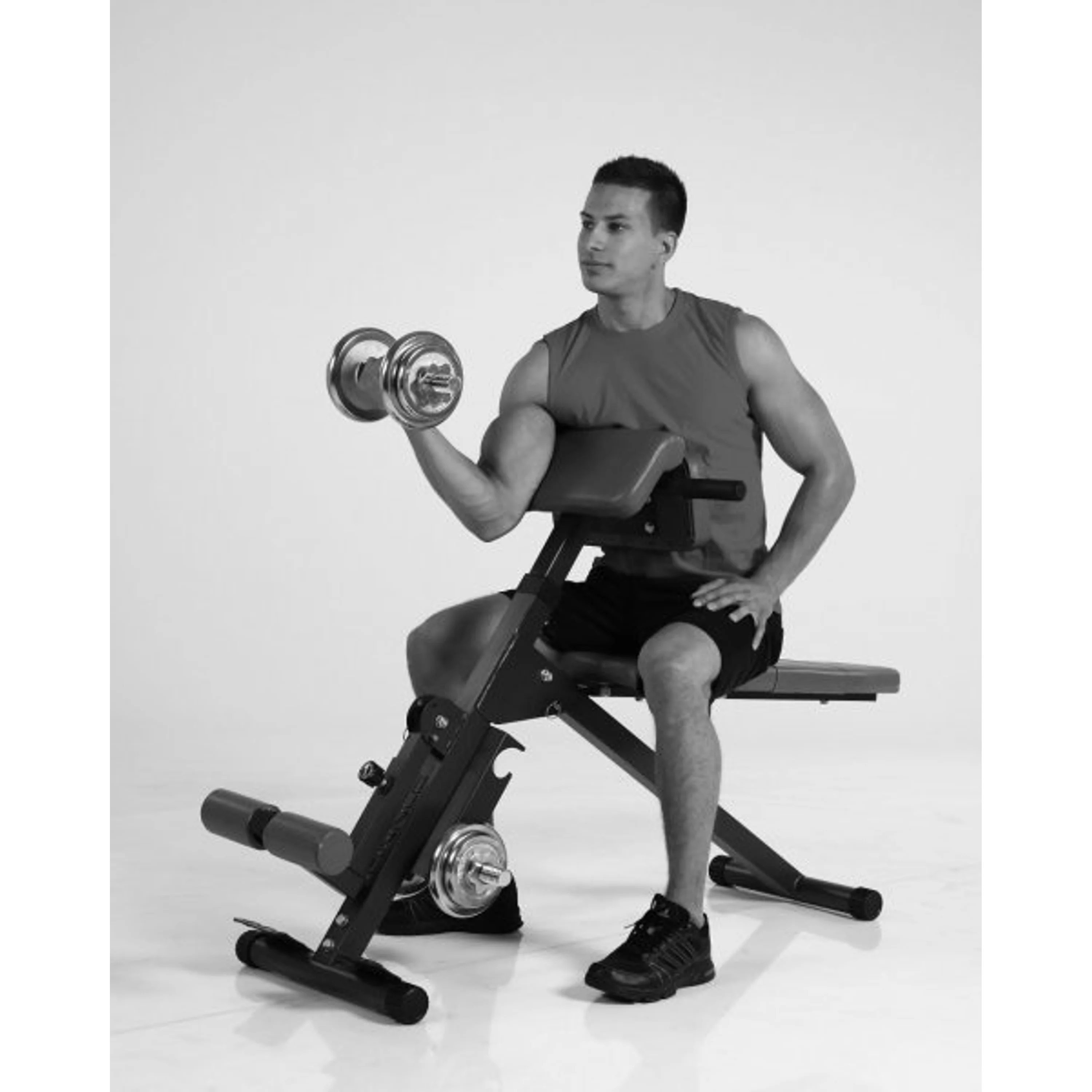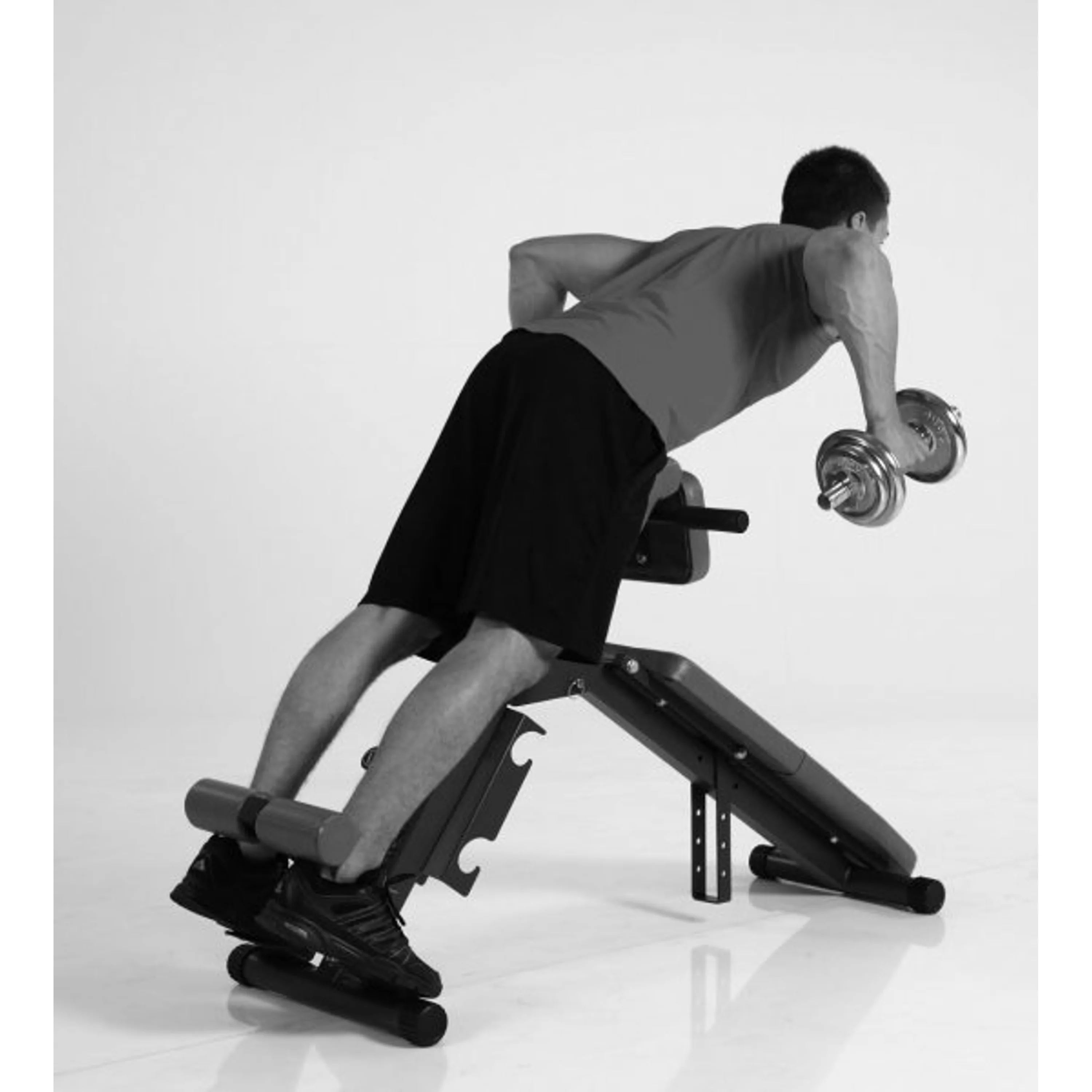 Víceúčelová lavice k posílení břišních, zádových, prsních svalů a paží. Lze cvičit s vlastní vahou, nebo použít jednoruční činky, které ale nejsou součástí. Součástí lavice je i bicepsový pult. Pomáhá jako prevence před bolestmi zad a spinálními zraněními.