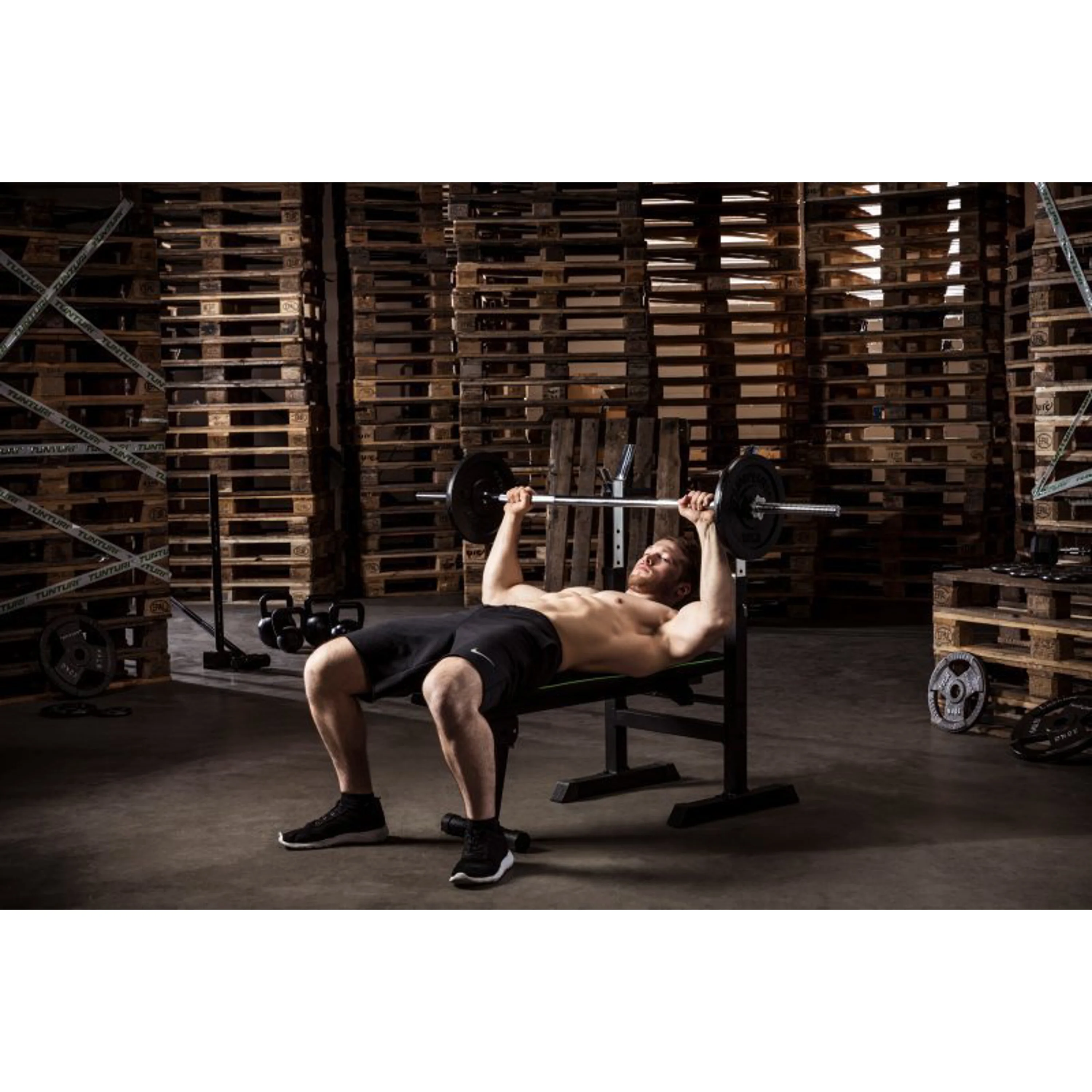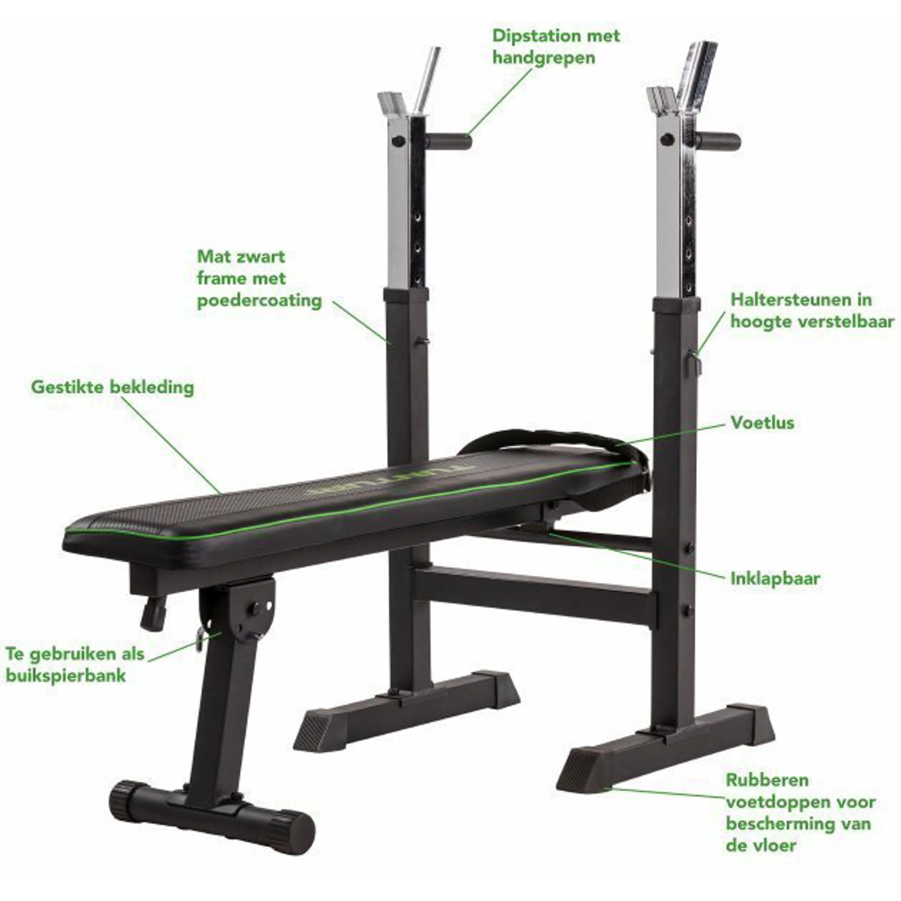 Nastavitelná posilovací lavice se stojanem na činky