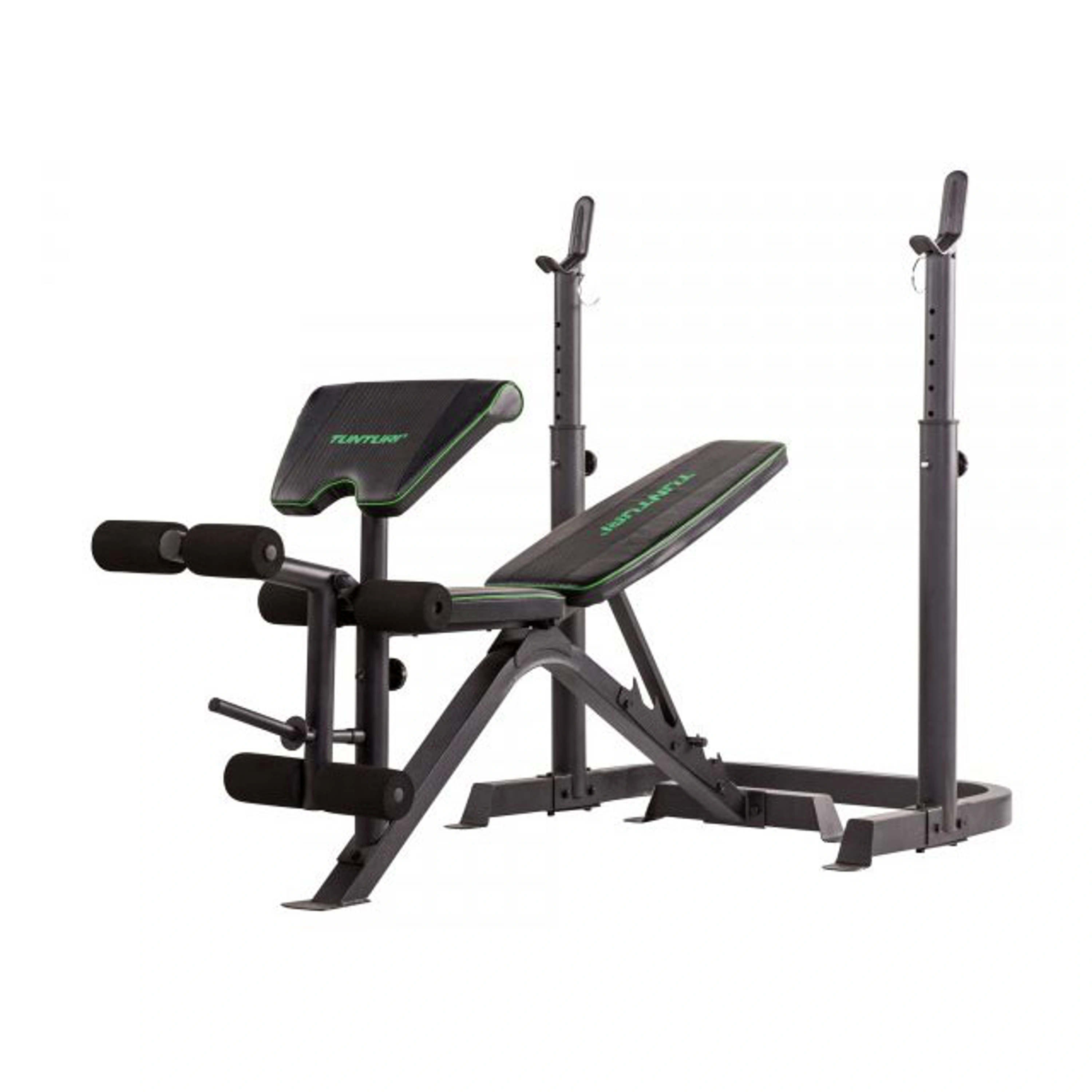 Posilovací lavice se stojanem na činku a bicepsovým pultem