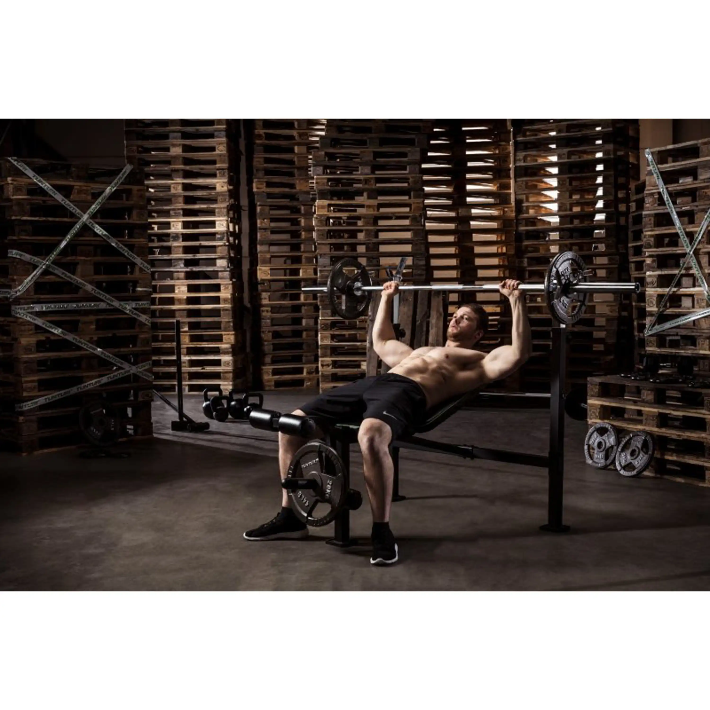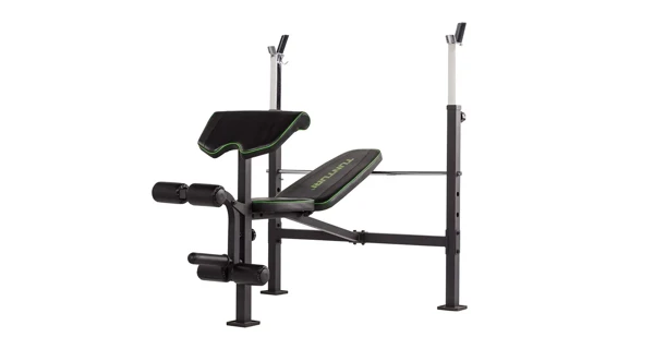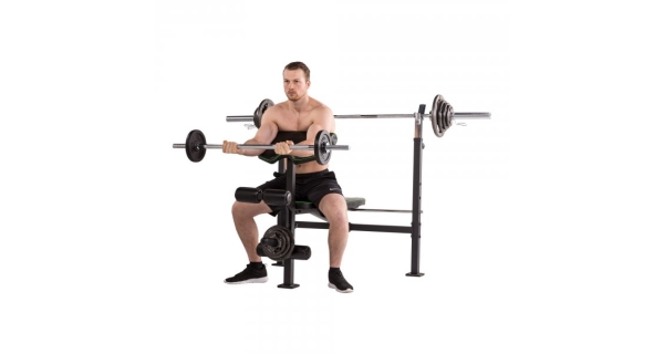 Posilovací lavice se stojanem na olympijskou činku a bicepsovým pultem