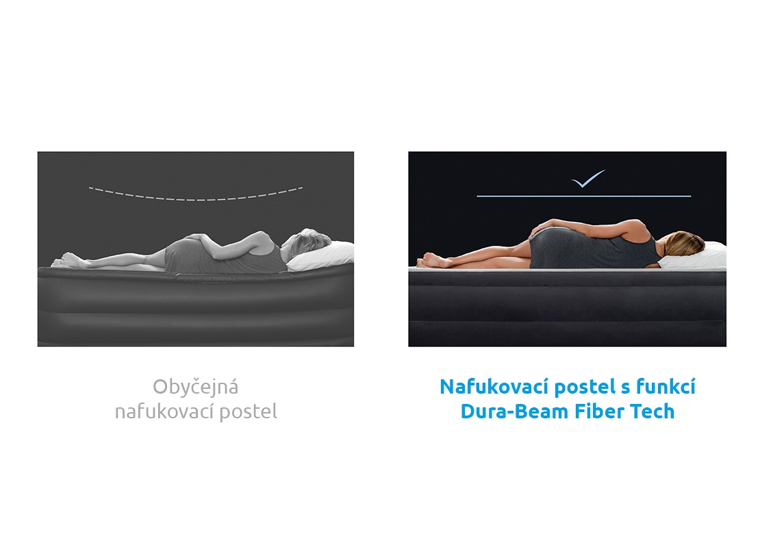 * Modelové řady nafukovacích postelí se dle vybavení dělí na tři kategorie, a to Standard, Plus a Deluxe.