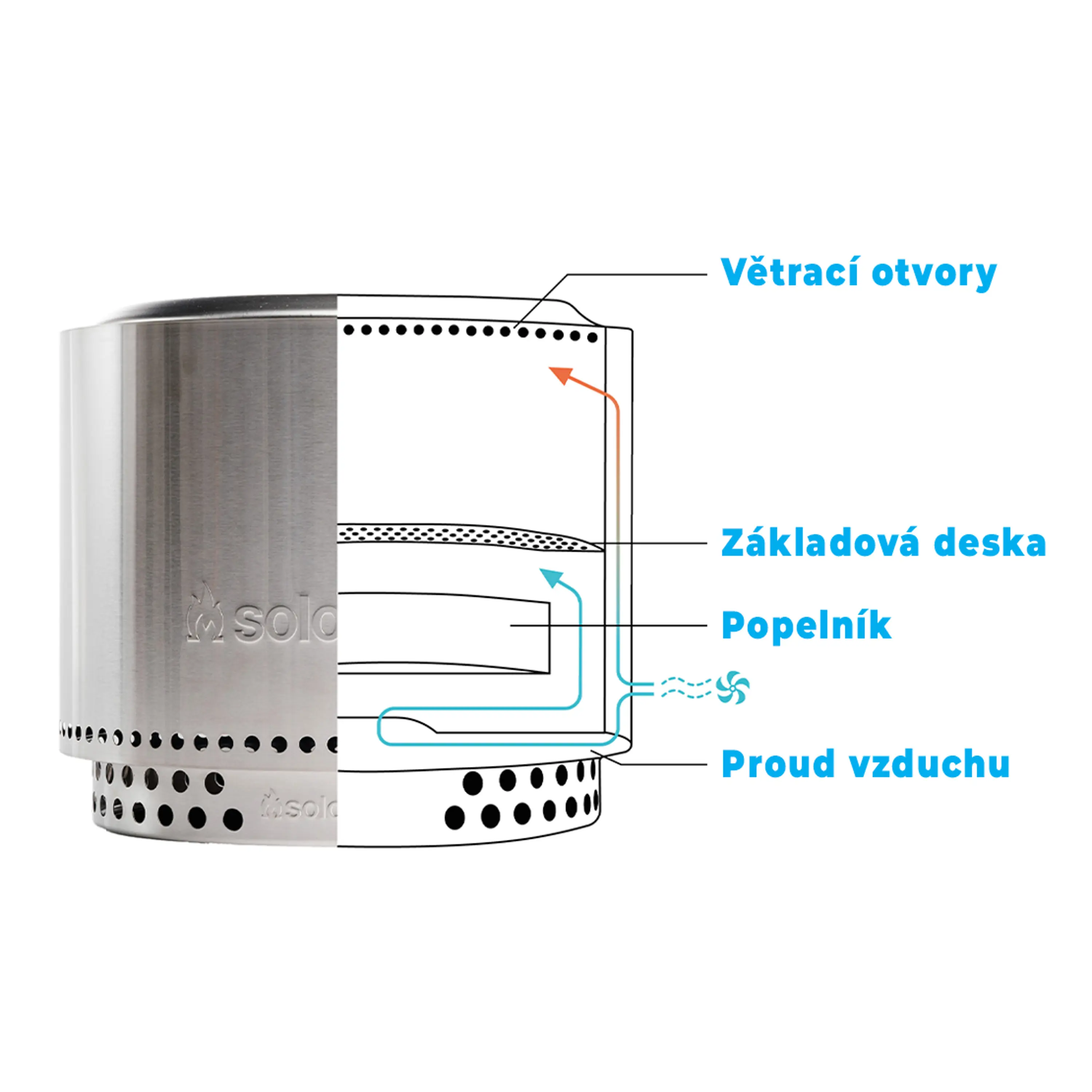 Bezkouřové venkovní ohniště s podstavcem Ranger Solo Stove umožňuje celoroční grilování nebo jen pro příjemné posezení u plápolajícího ohně. Díky kompaktní hmotnosti cca 7 kg bude ohniště výborným společníkem i na cestách či při kempování. Jako palivo se používá kusové dřevo, dřevěné uhlí či dřevěné pelety. Konstrukci ohniště tvoří podstavec, nerezová vana s dvojitým pláštěm, nerezový prstenec, palivový rošt a popelník.