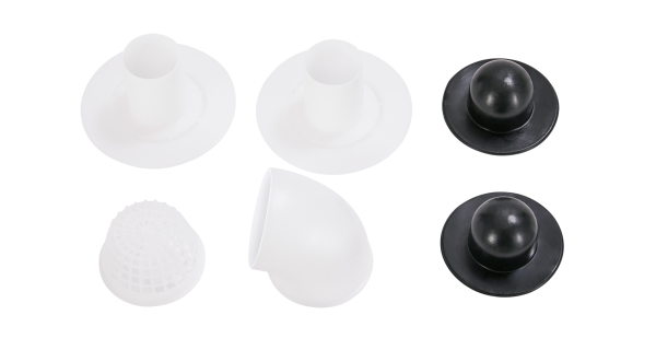 Balení obsahuje 2 kusy průchodů stěnou (s košíčkem, s kolínkem) a záslepky průchodů stěnou.