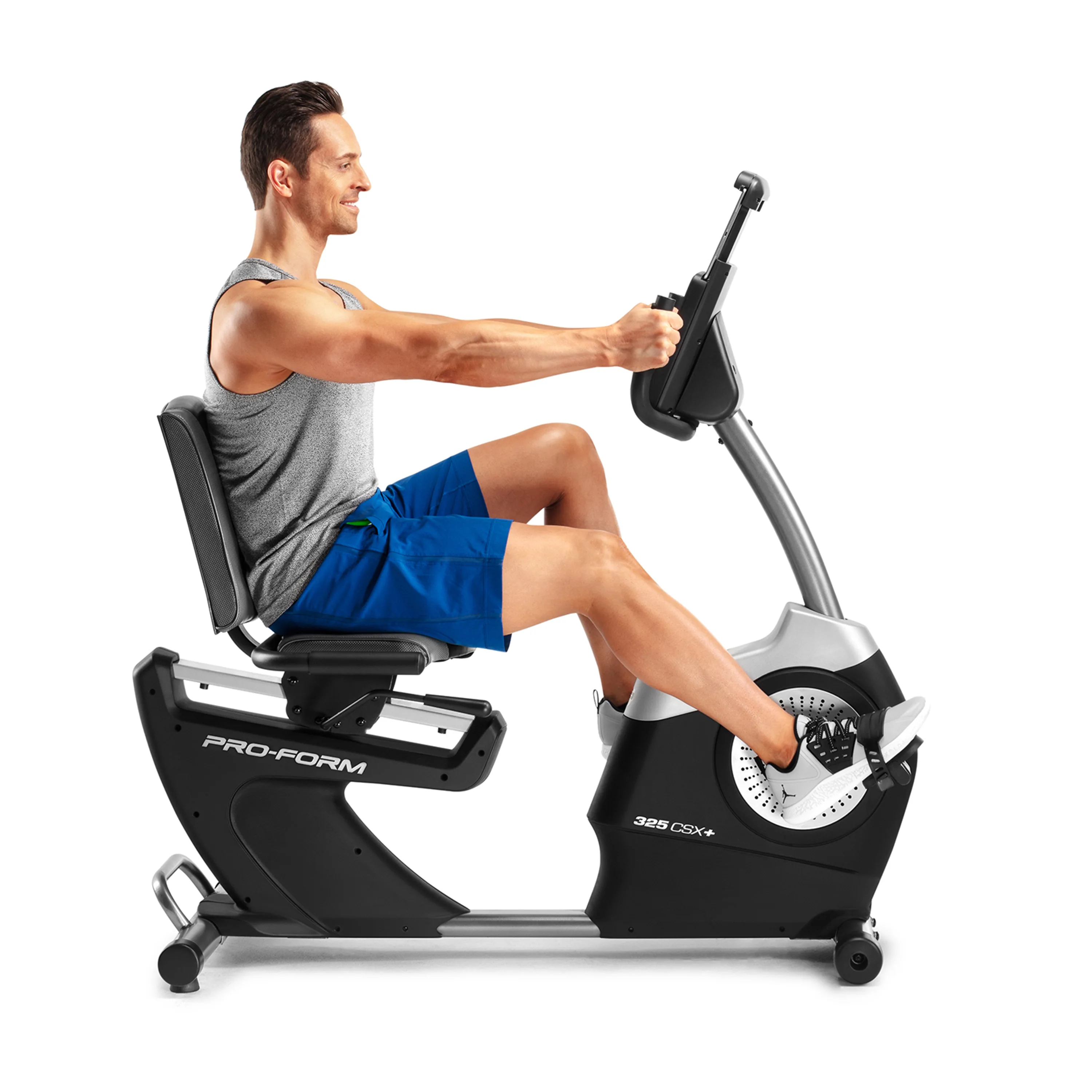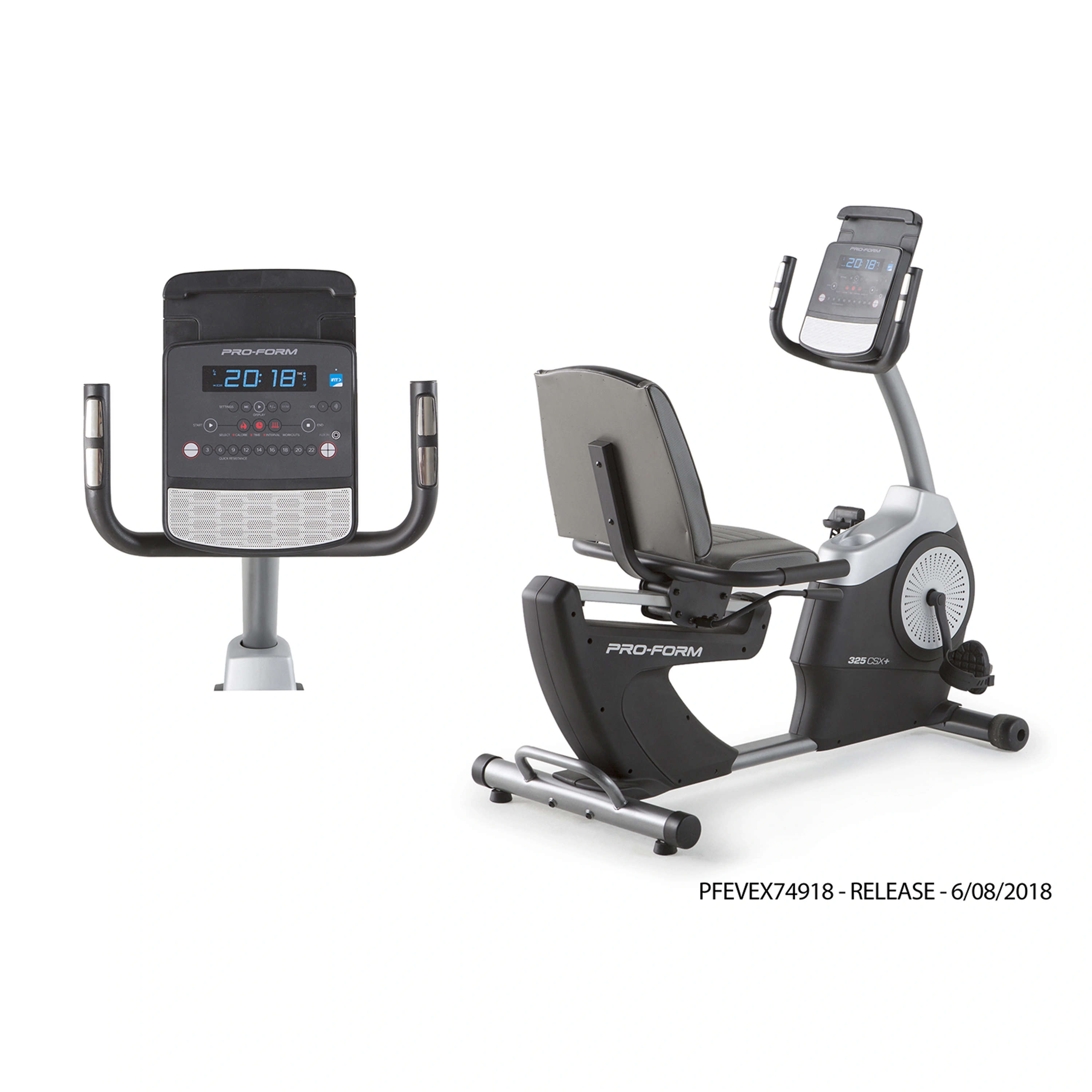 Horizontální rotoped ProForm 325 CSX + se také označuje jako recumbent. Tento model poskytuje zákazníkům kombinaci kvalitní mechaniky a ergonomie rámu s nosností do 130 kg. Nabízí přirozenou ergonomii pohybu, možnost nastavení sedla. Díky tomu je zaručen pohodlný a správný pohyb drobným i vyšším postavám. Stabilní a masivní konstrukce, včetně kvalitních komponentů, prodlužuje životnost stroje i při pravidelném tréninku.