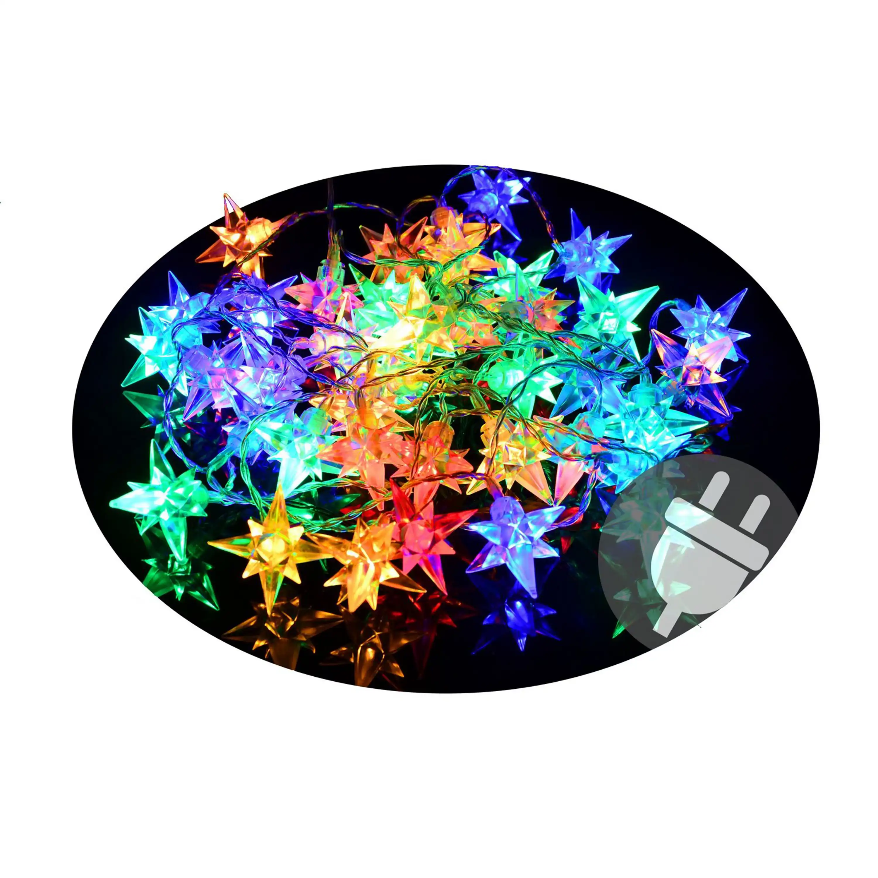 Tyto barevné LED hvězdy vykouzlí slavnostní a kouzelnou atmosféru na vaší zahradě či v domově. Řetěz lze používat po celý rok. LED světla mohou ušetřit až 80% energie ve srovnání s běžnými žárovkami! Nevyzařují teplo a jsou odolné proti otřesům.