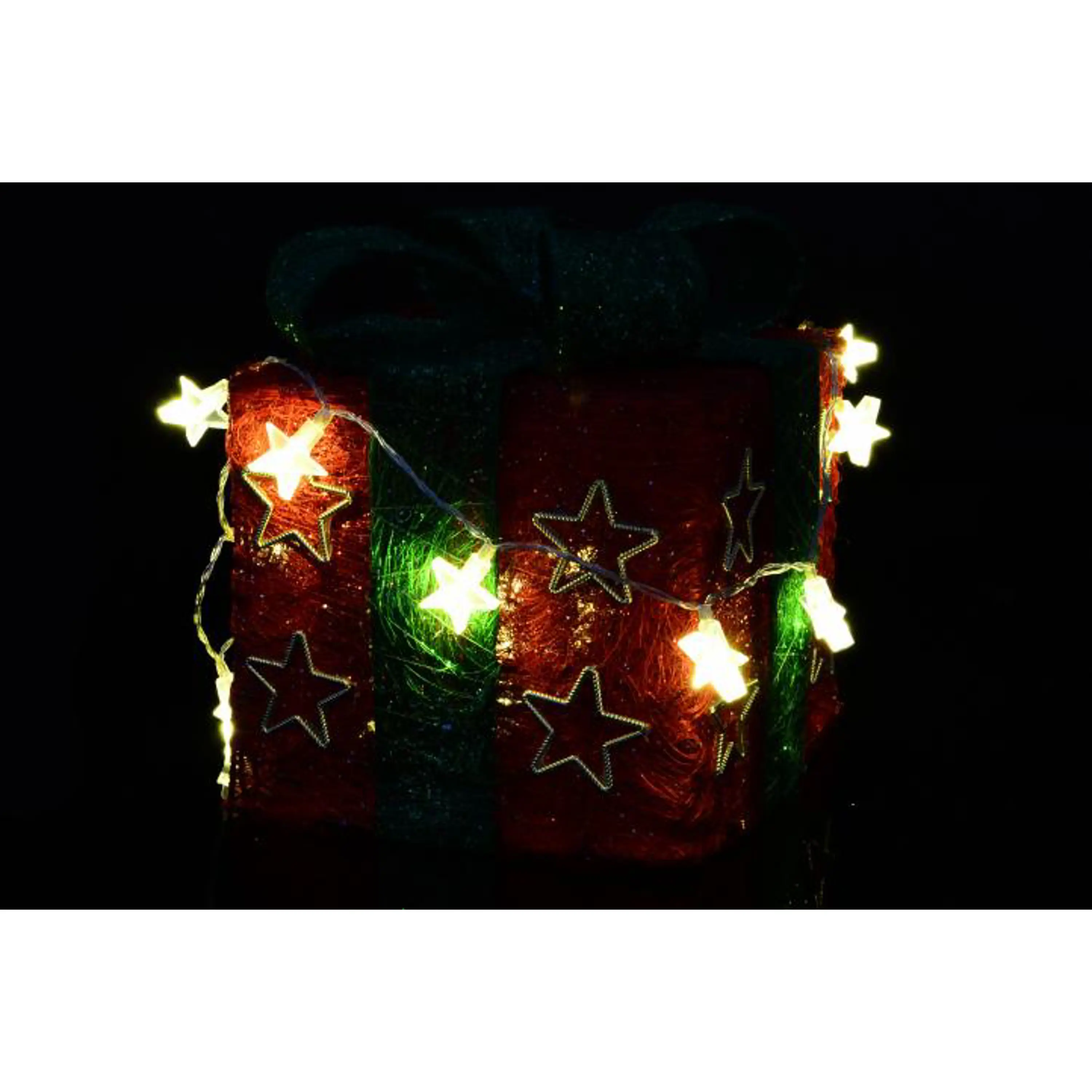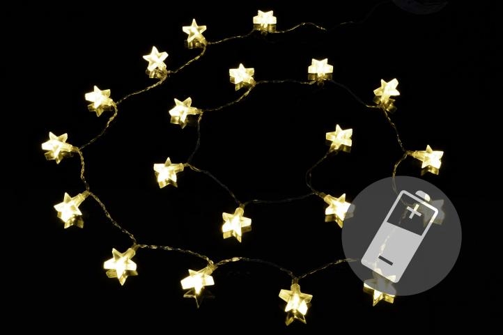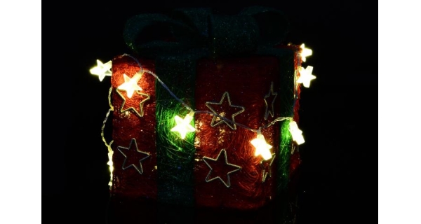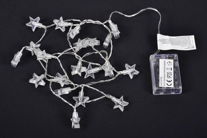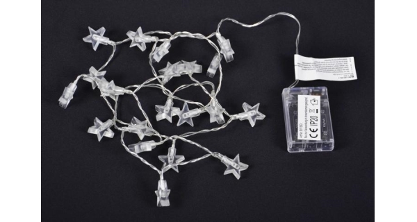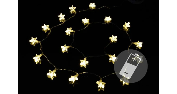 Toto překrásné dekorativní osvětlení vnese do Vašeho domova kouzelnou zimní atmosféru. Díky LED technologi nemusítě měnit žárovky, jsou odolné proti otřesům a nevyřazjí žádné teplo. Světelný řetěz je napájení pomocí baterií a svítí na ně 20 LED diod teple bílých.