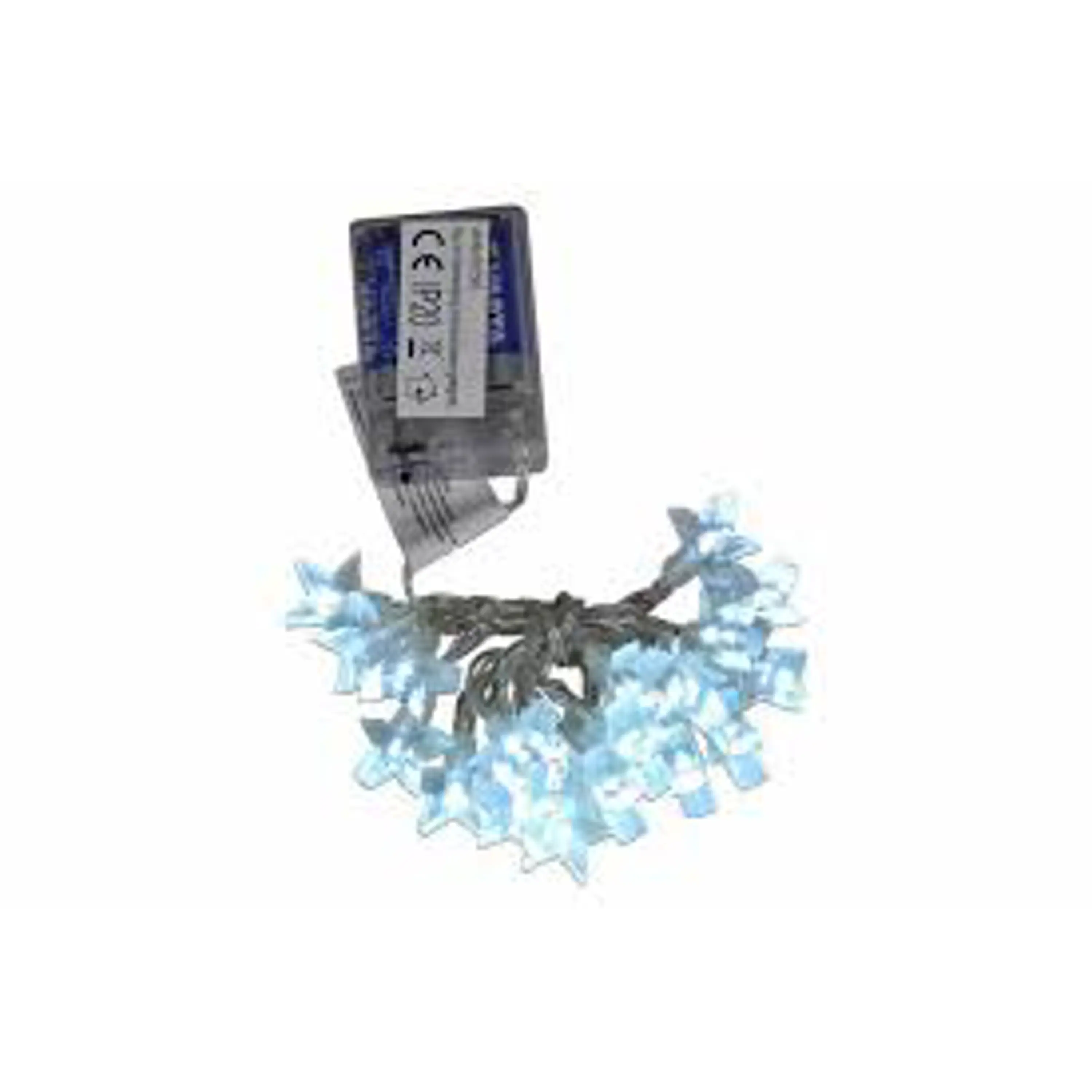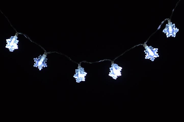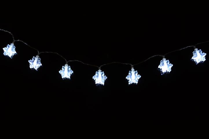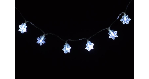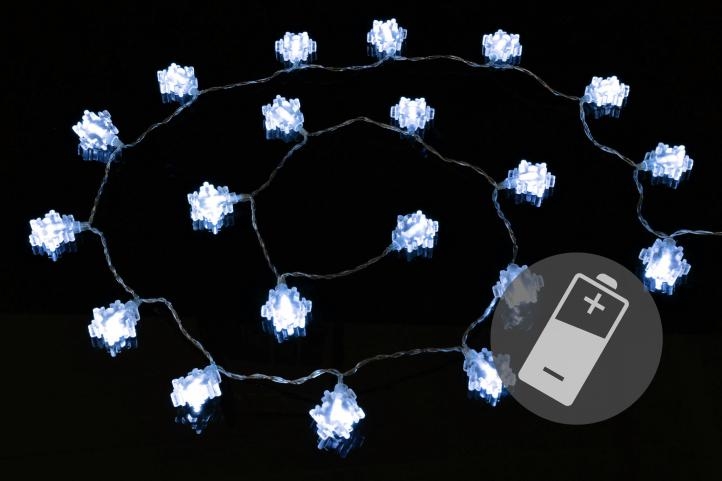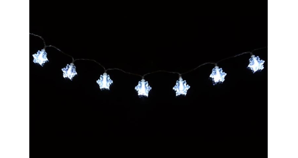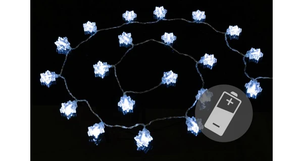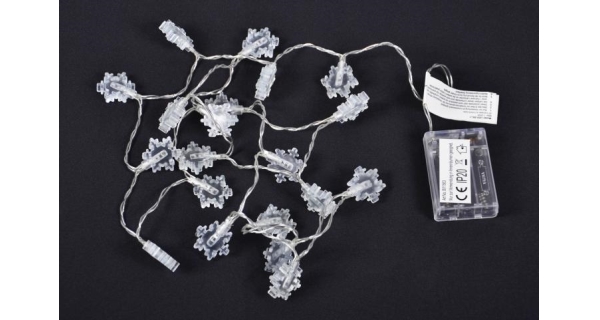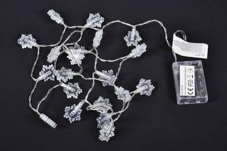 Toto překrásné dekorativní osvětlení vnese do Vašeho domova kouzelnou zimní atmosféru. Díky LED technologi nemusítě měnit žárovky, jsou odolné proti otřesům a nevyřazjí žádné teplo. Světelný řetěz je napájení pomocí baterií a svítí na ně 20 LED diod studeně bílých.
