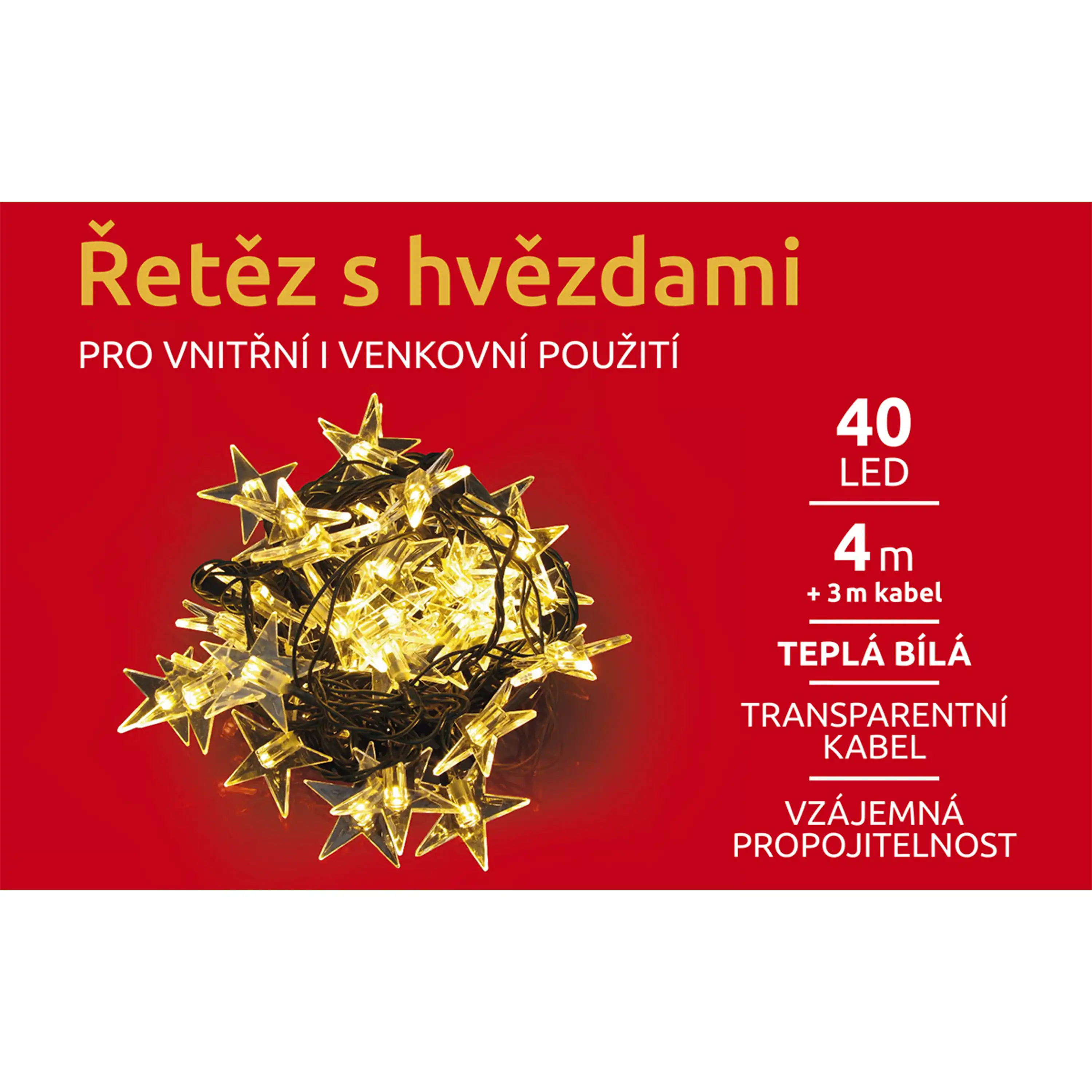 řetěz s hvězdami ozáří váš interiér i exteriér. Vhodný na okno, stromek i balkón.