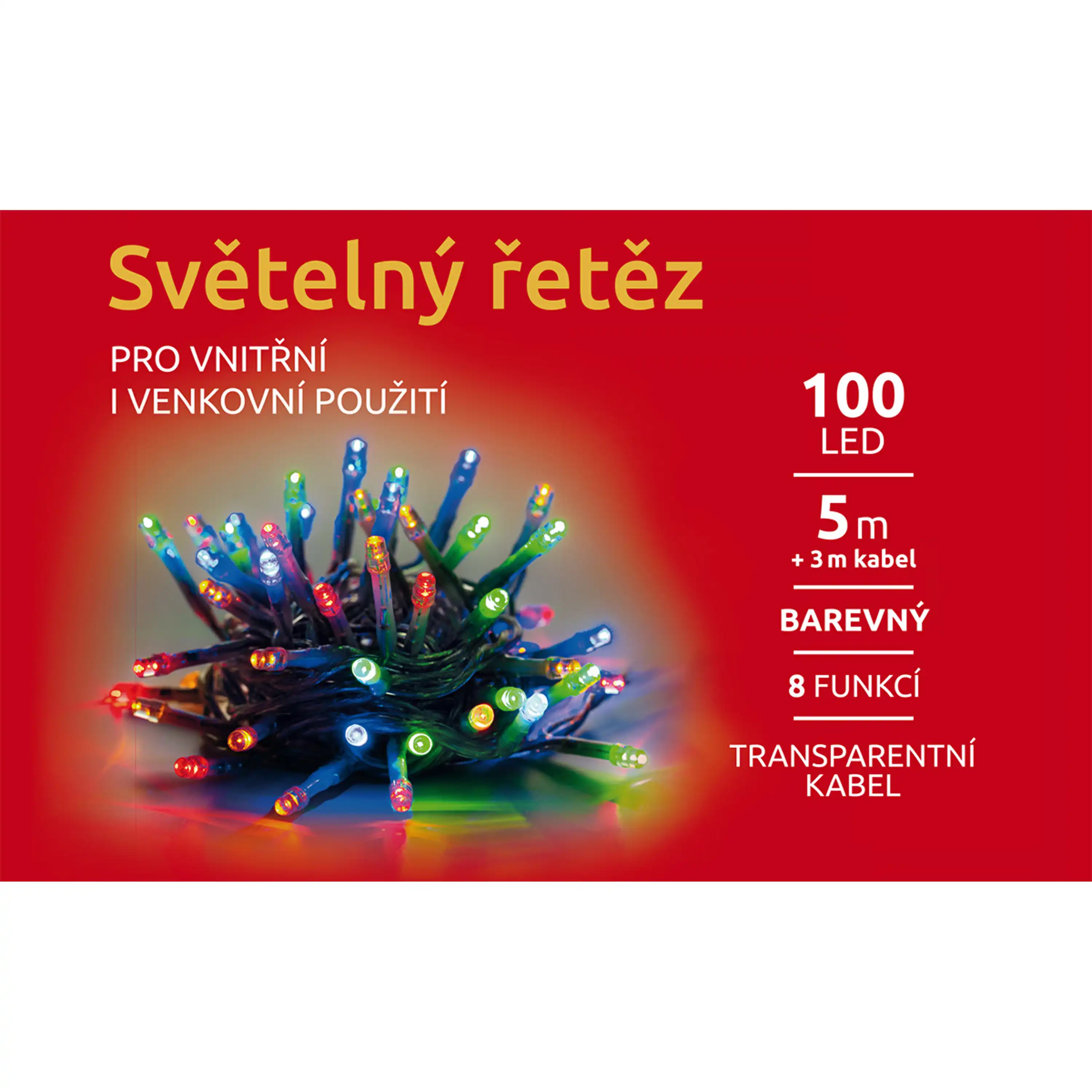 Světelný řetěz ozáří váš interiér i exteriér. Vhodný na okno, stromek, balkón i dům. Díky LED diodám ušetříte až 90 % energie oproti klasickým žárovkám. Průměrná životnost LED diody je cca 2 000 hodin svícení. Různé barvy osvětlení, se světelnými efekty - 8 módů.