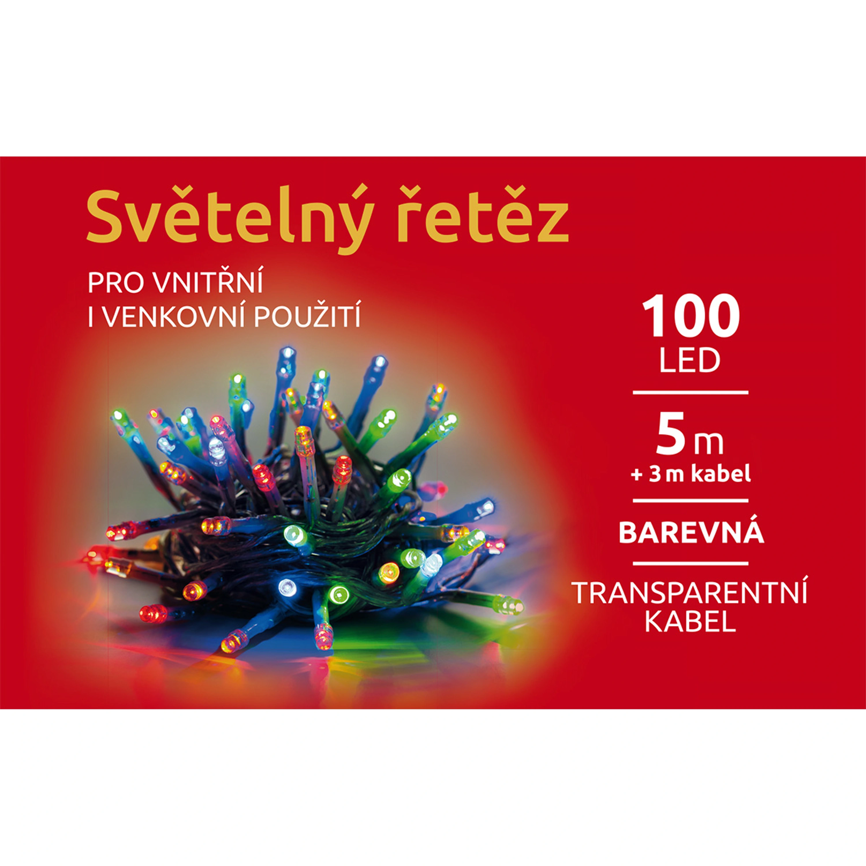 Světelný řetěz ozáří váš interiér i exteriér. Vhodný na okno, stromek, balkón i dům. Díky LED diodám ušetříte až 90 % energie oproti klasickým žárovkám. Průměrná životnost LED diody je cca 2 000 hodin svícení. Různé barvy osvětlení, bez světelných efektů - pouze svítí.