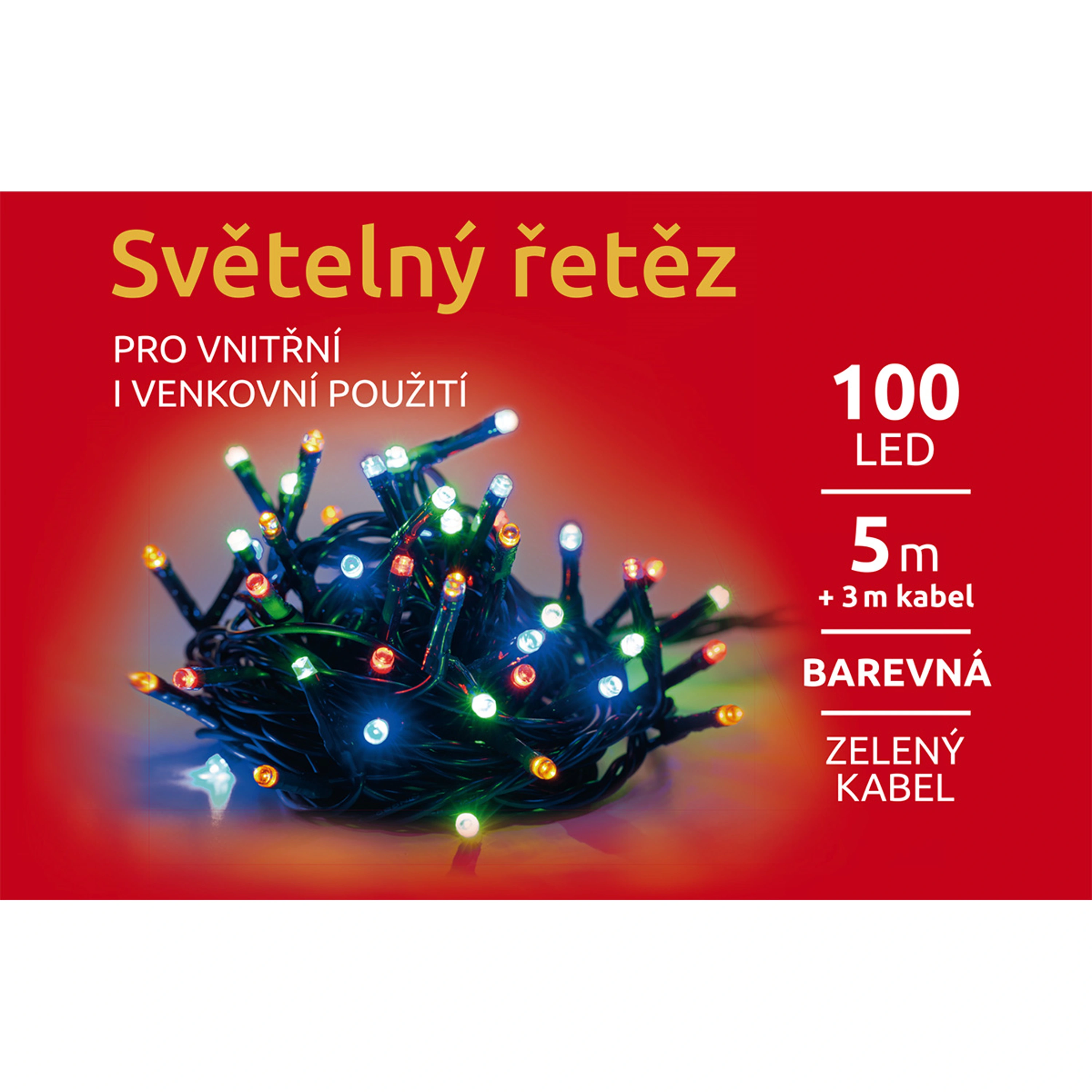 Světelný řetěz ozáří váš interiér i exteriér. Vhodný na okno, stromek, balkón i dům. Díky LED diodám ušetříte až 90 % energie oproti klasickým žárovkám. Průměrná životnost LED diody je cca 2 000 hodin svícení. Různé barvy osvětlení, bez světelných efektů - pouze svítí.